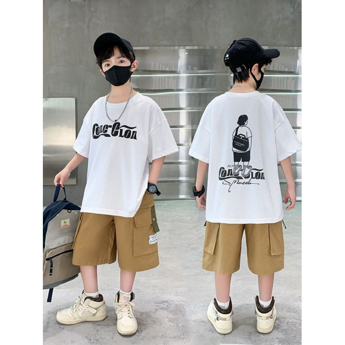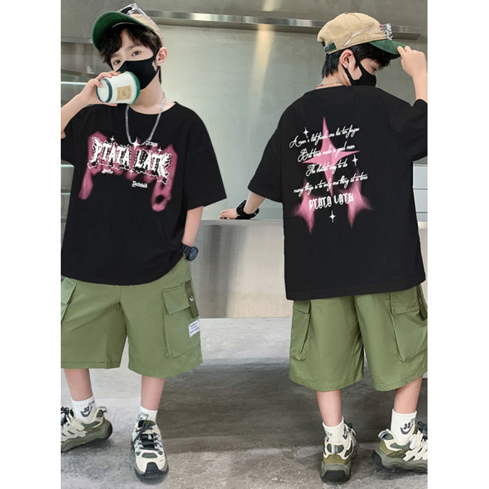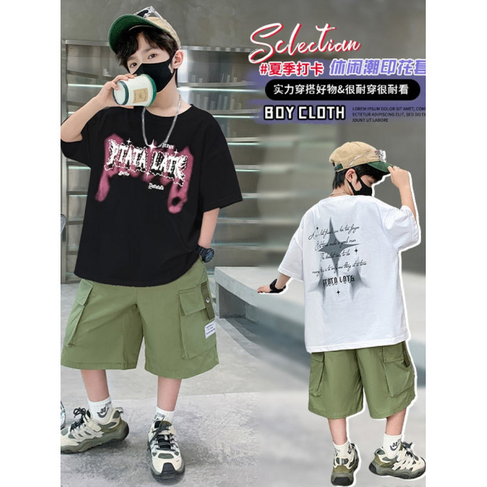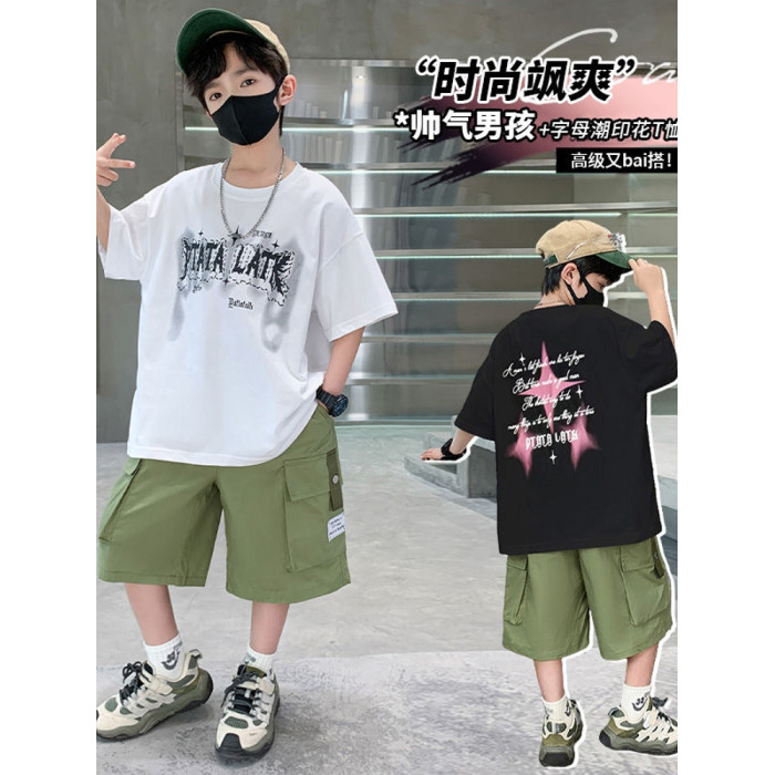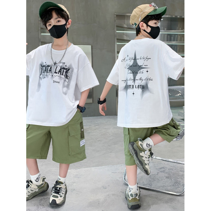 男童夏裝短袖套裝2025新款兒童男孩t恤8寬松夏季中大童短褲兩件套