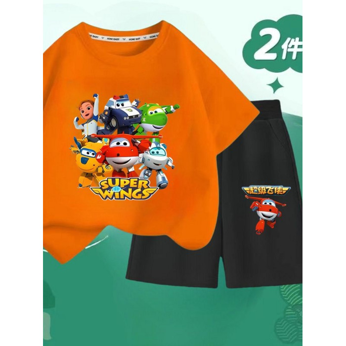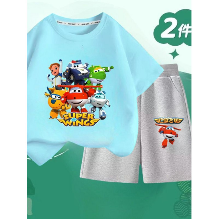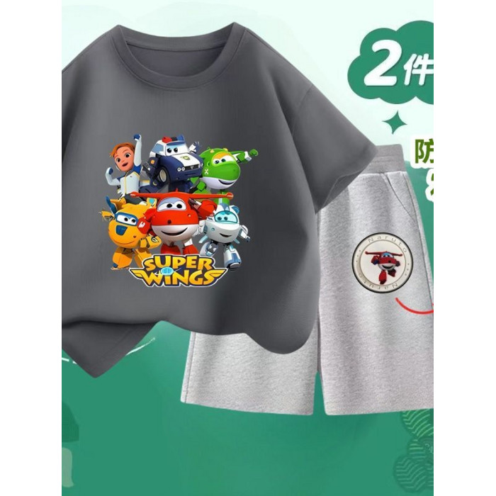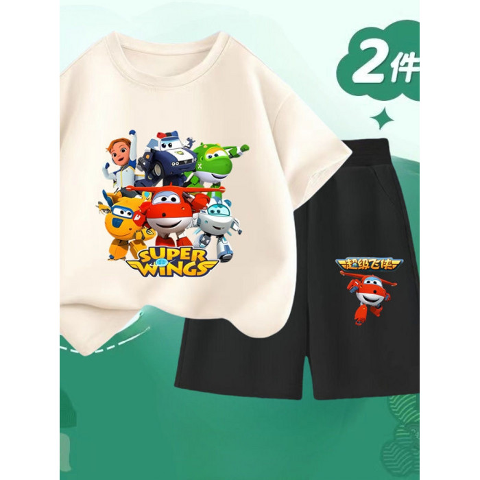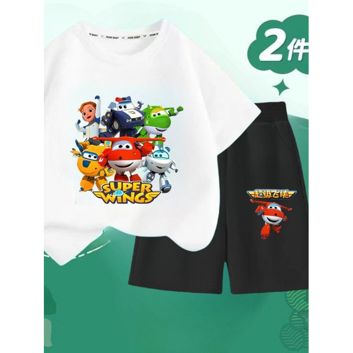 安哼安哼2025夏季新款超級飛俠純棉短袖套裝男童短袖兒童帥氣兩件
