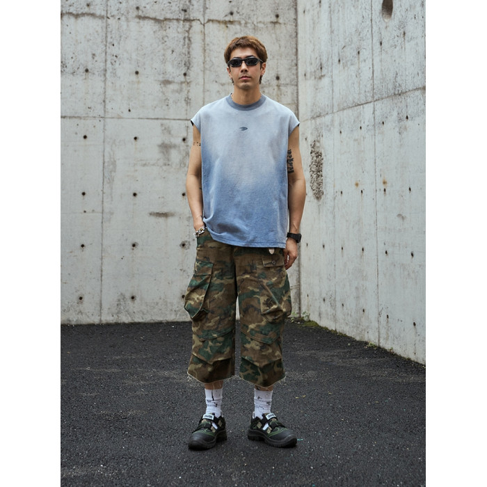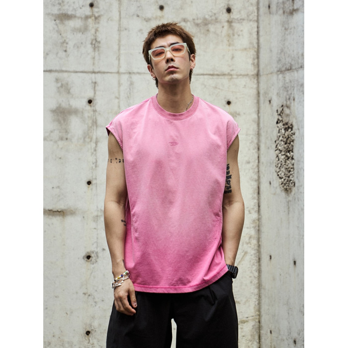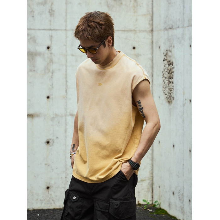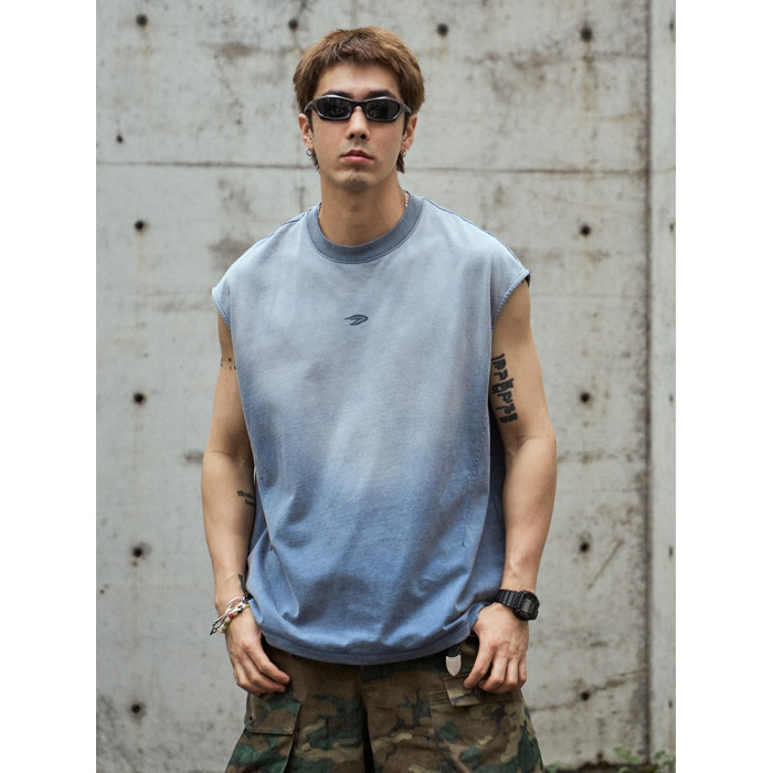 TANOXI V055 水洗做舊噴砂蠟染 切割解搆剪裁 忍者袖背心無袖坎肩