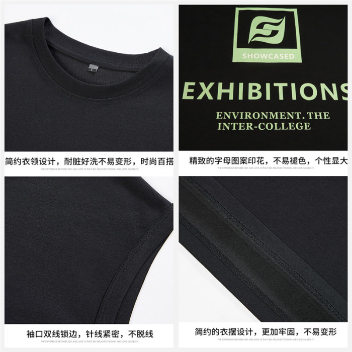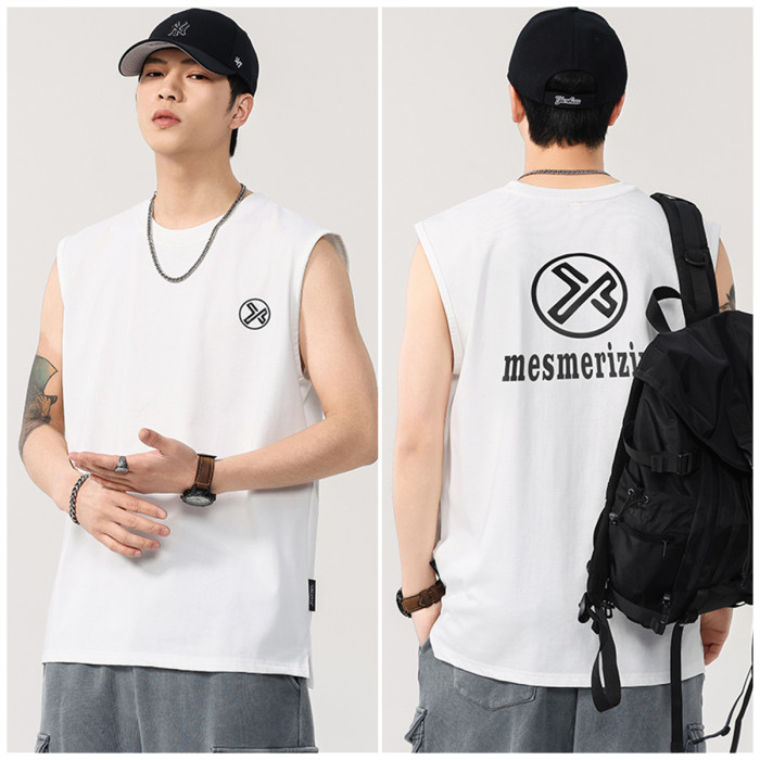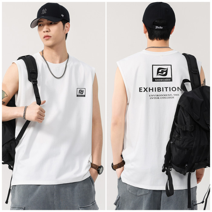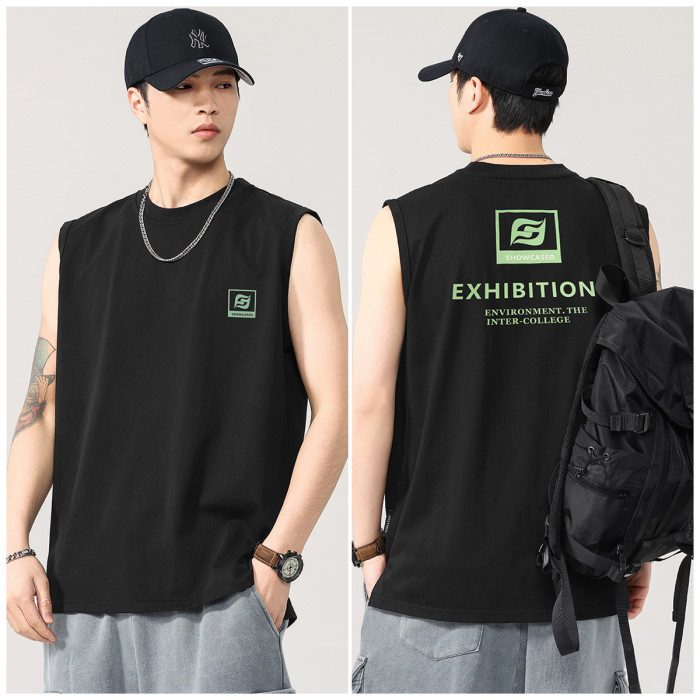 潮流印花運動背心男寬松加肥加大碼胖人休閒健身打球無袖T恤坎肩