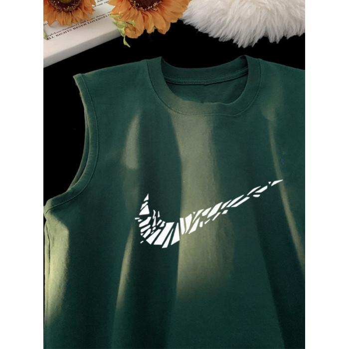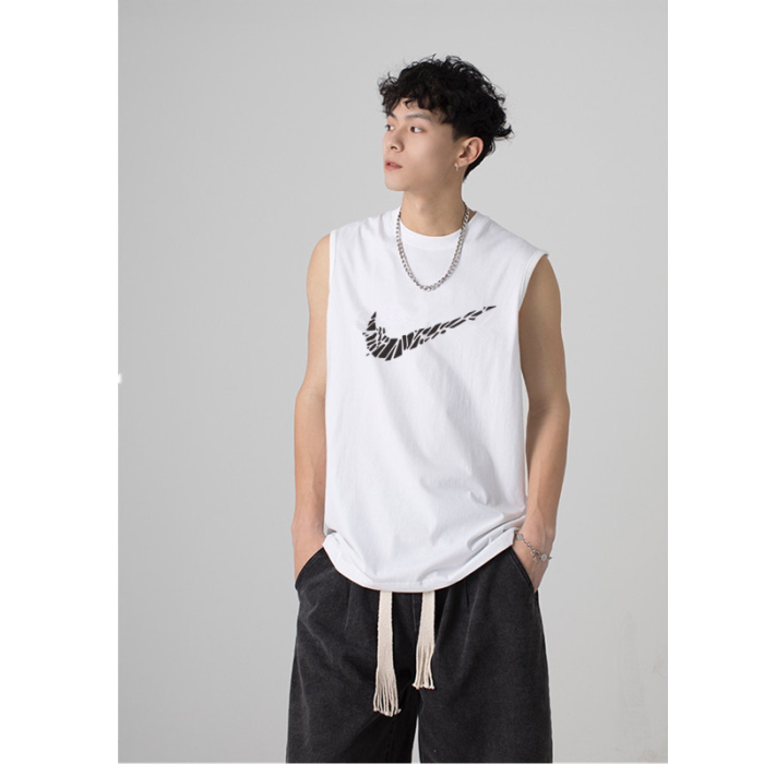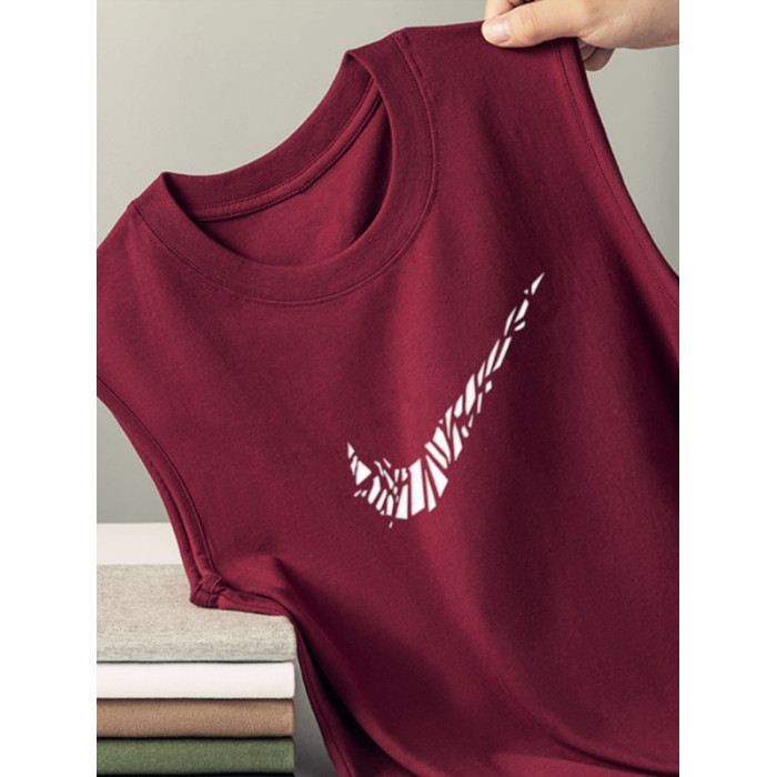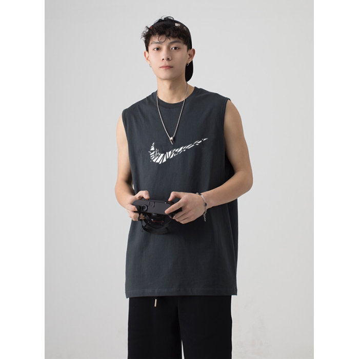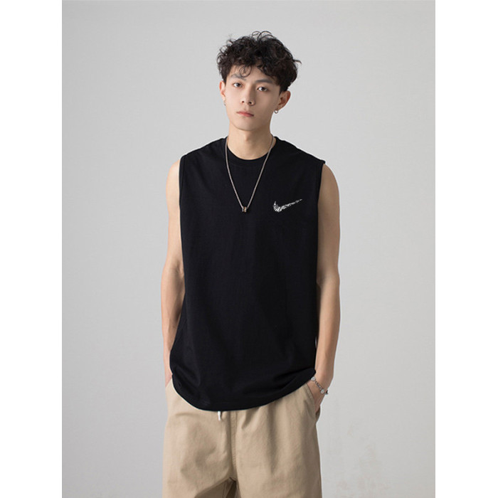 奧特萊斯夏季純棉背心男寬松透氣酒紅色無袖T恤坎肩籃球運動上衣