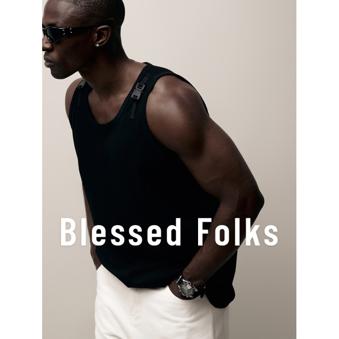 Blessed Folks重磅雙肩膠釦機能酷純棉美式復古窄肩健身運動背心