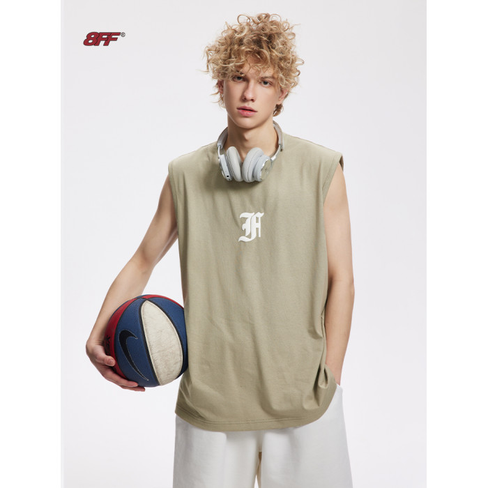8FF/25SS五色 哥特髮泡印花美式坎肩背心男生潮牌涼感運動無袖t恤