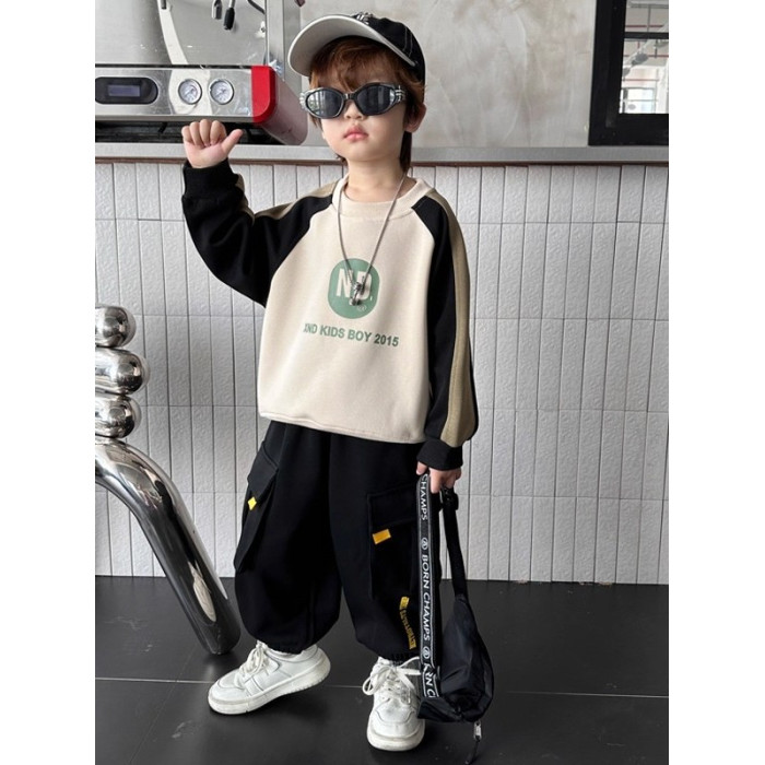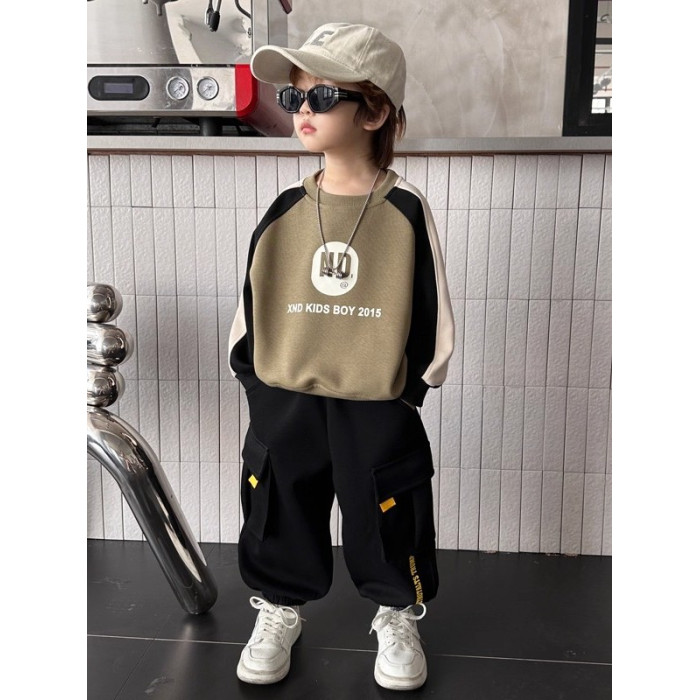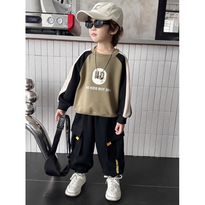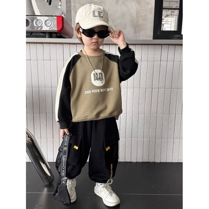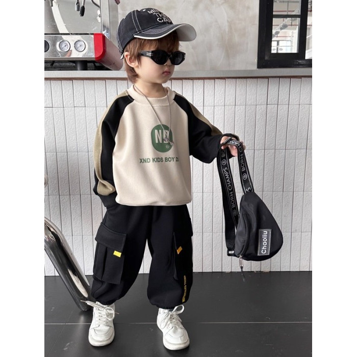 英國next svip歐貨男童衛衣套裝2025秋兒童休閒衣服工裝褲兩件套