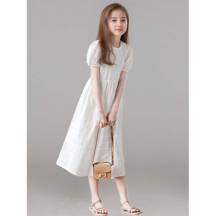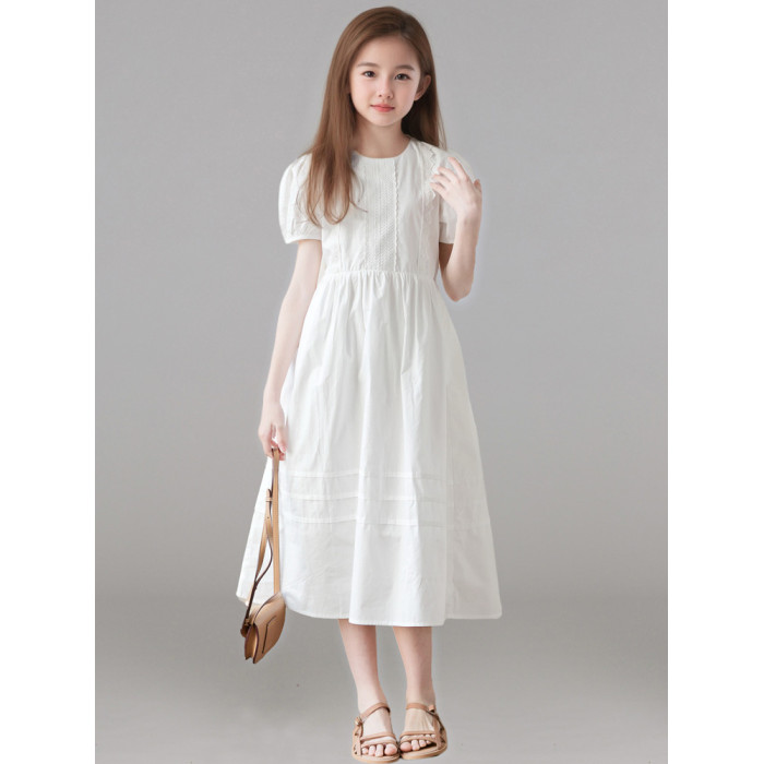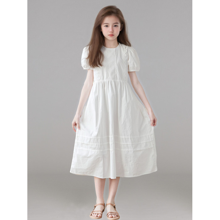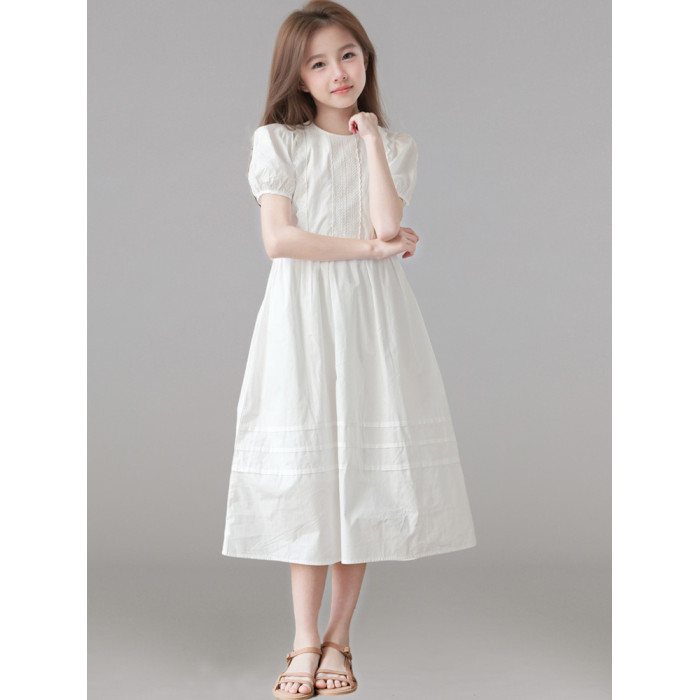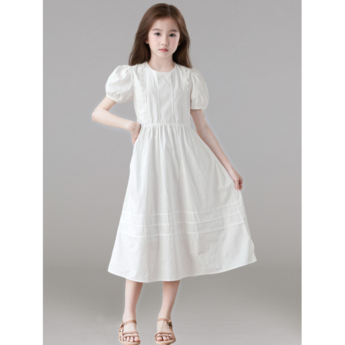 夏季女童純棉白色蕾絲甜美公主裙 童裝短袖夏款連衣裙 中大兒童