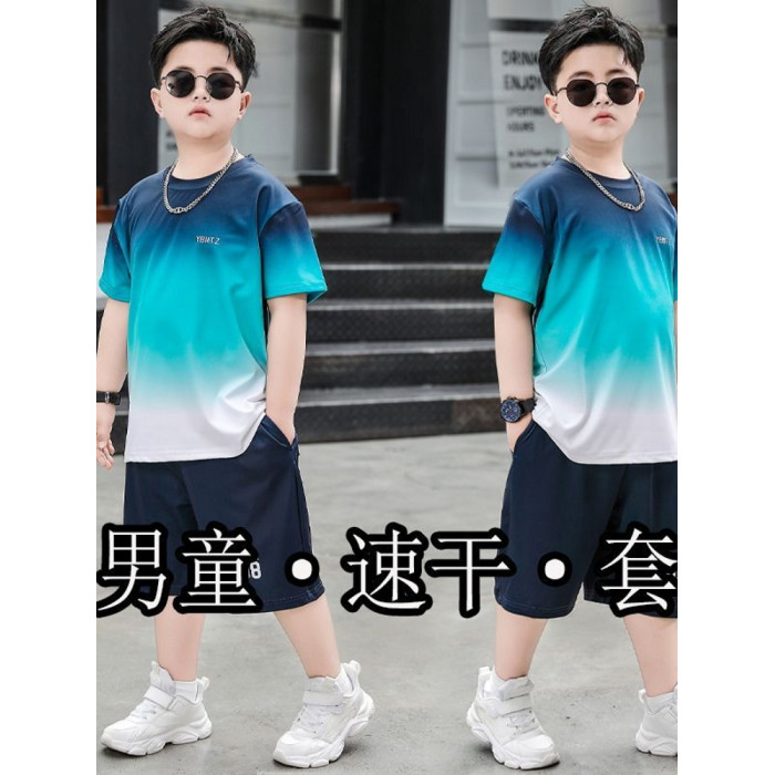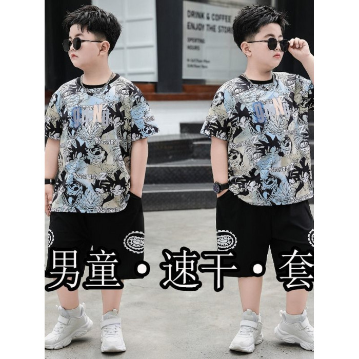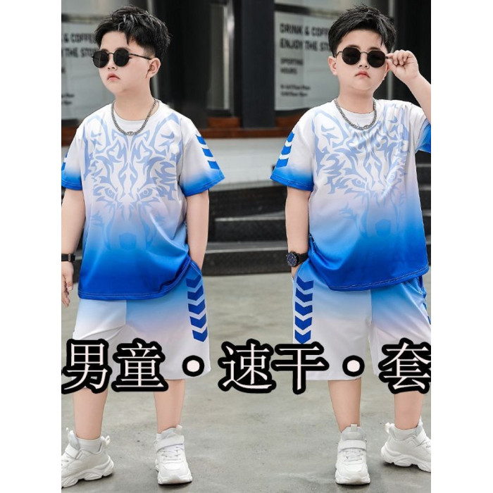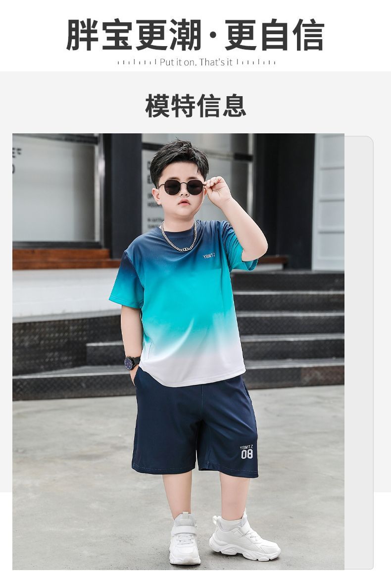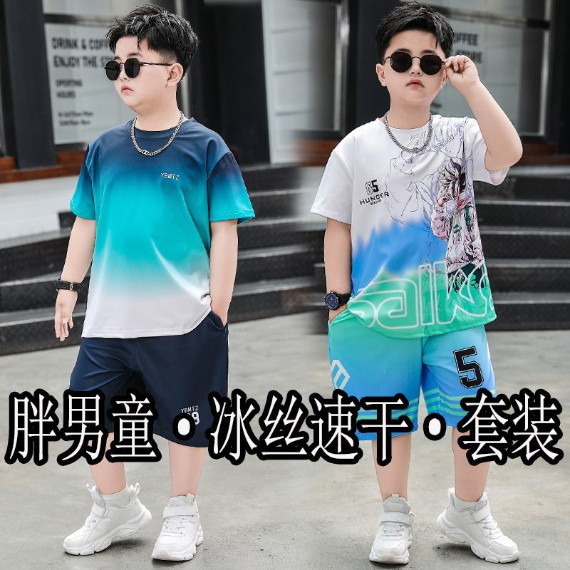安哼安哼胖童裝男童加肥加大碼夏裝冰絲速乾套裝中大童胖男孩子運