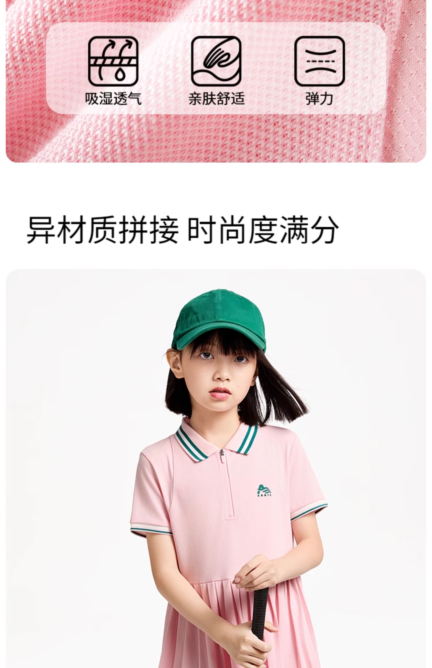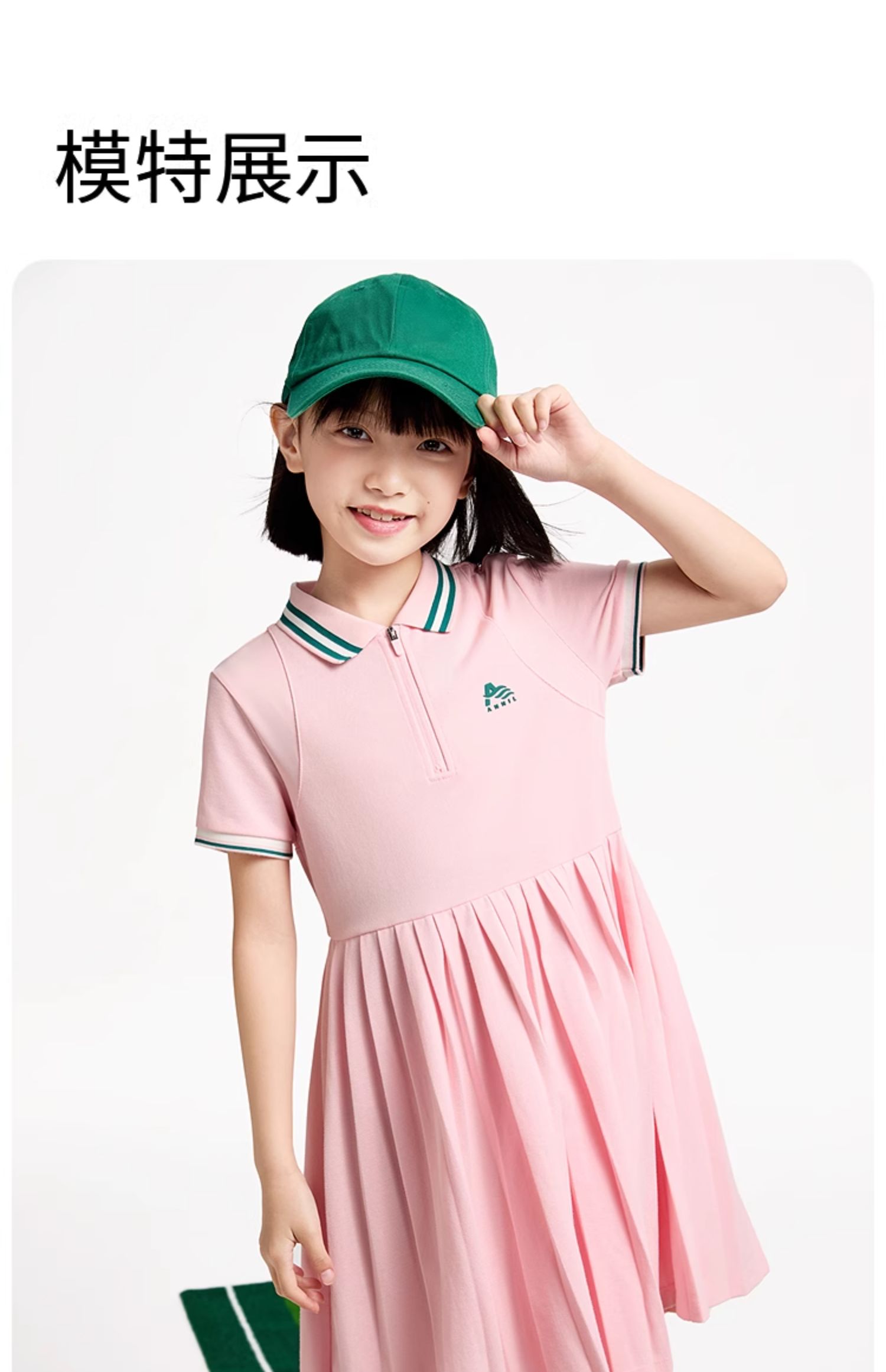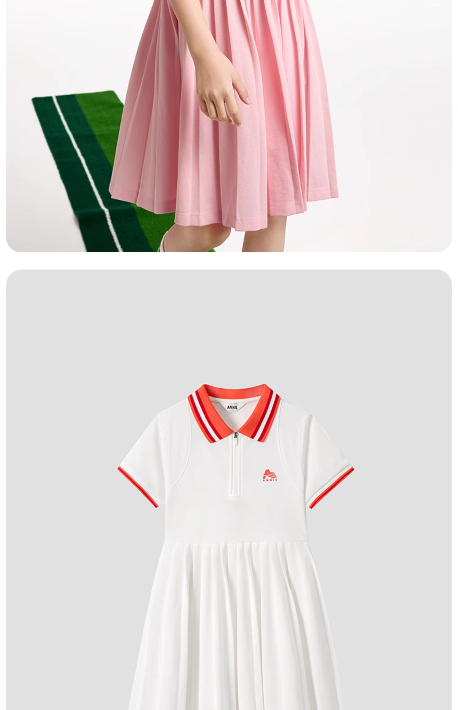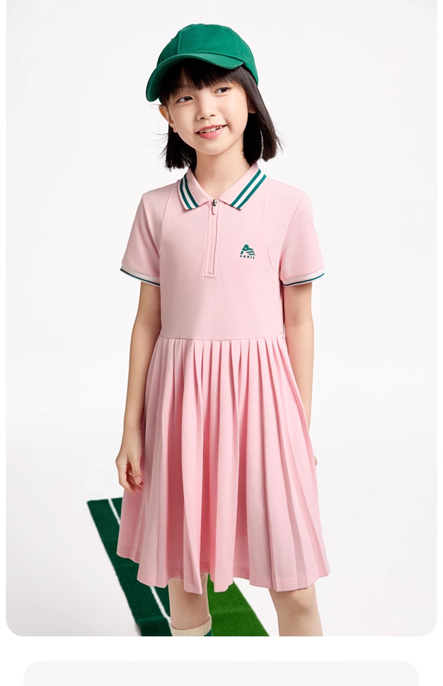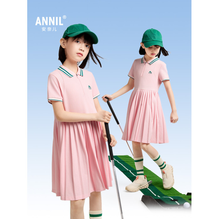安奈兒童裝女童短袖連衣裙2025夏新款運動學院風透氣A字polo裙子