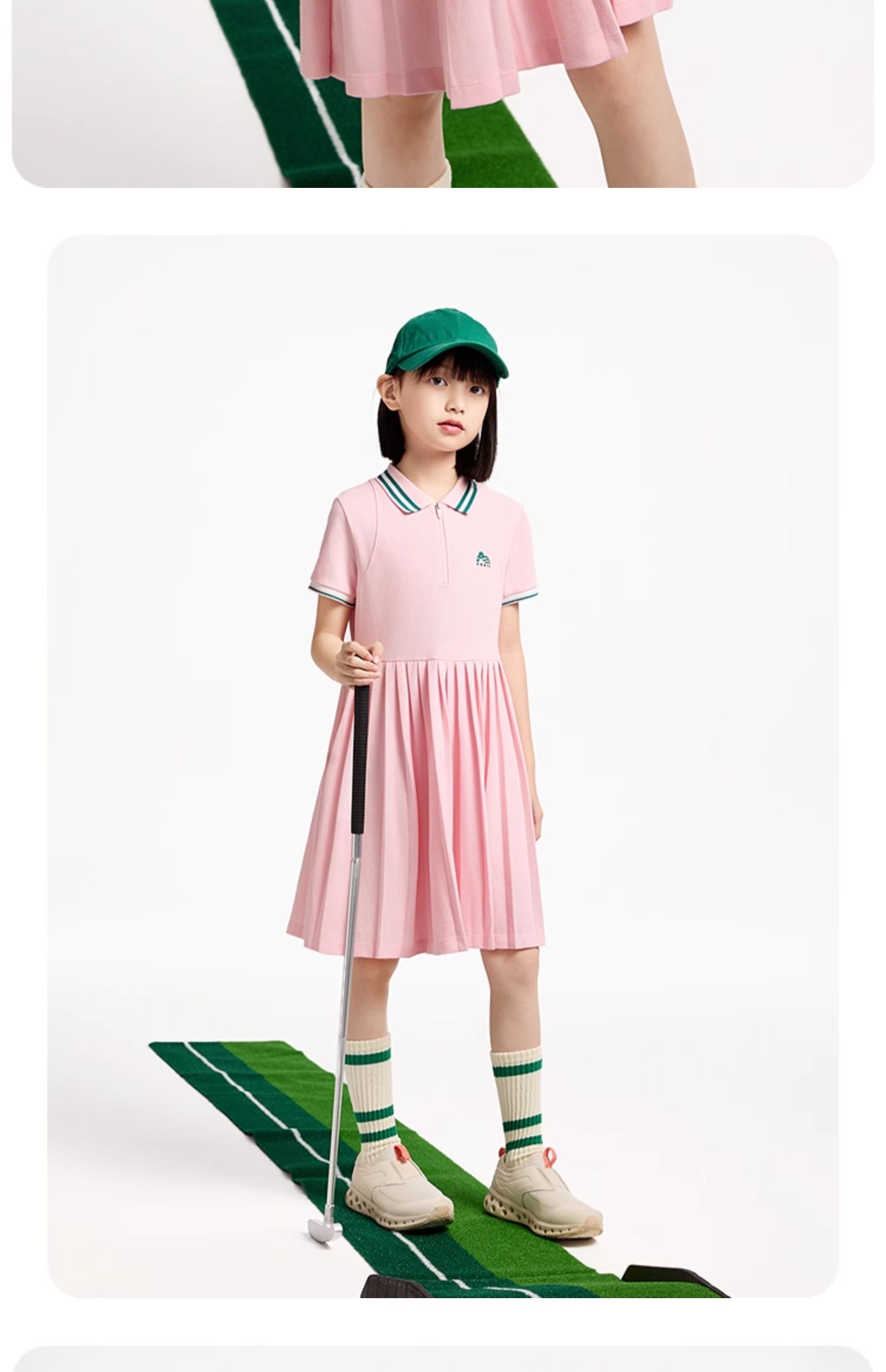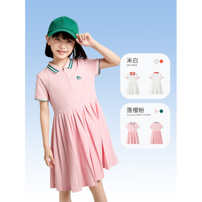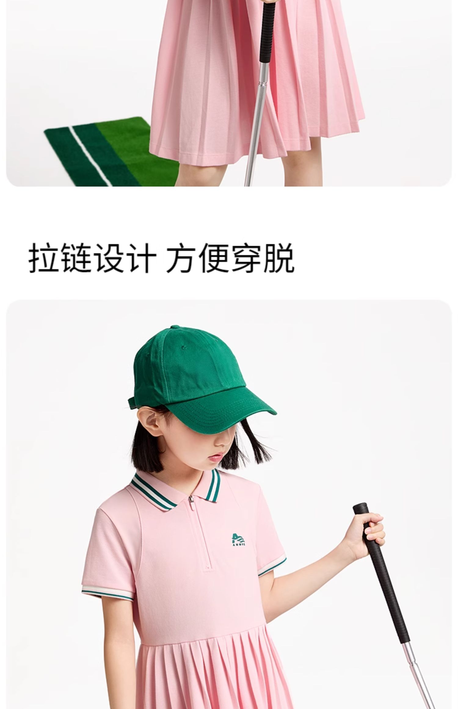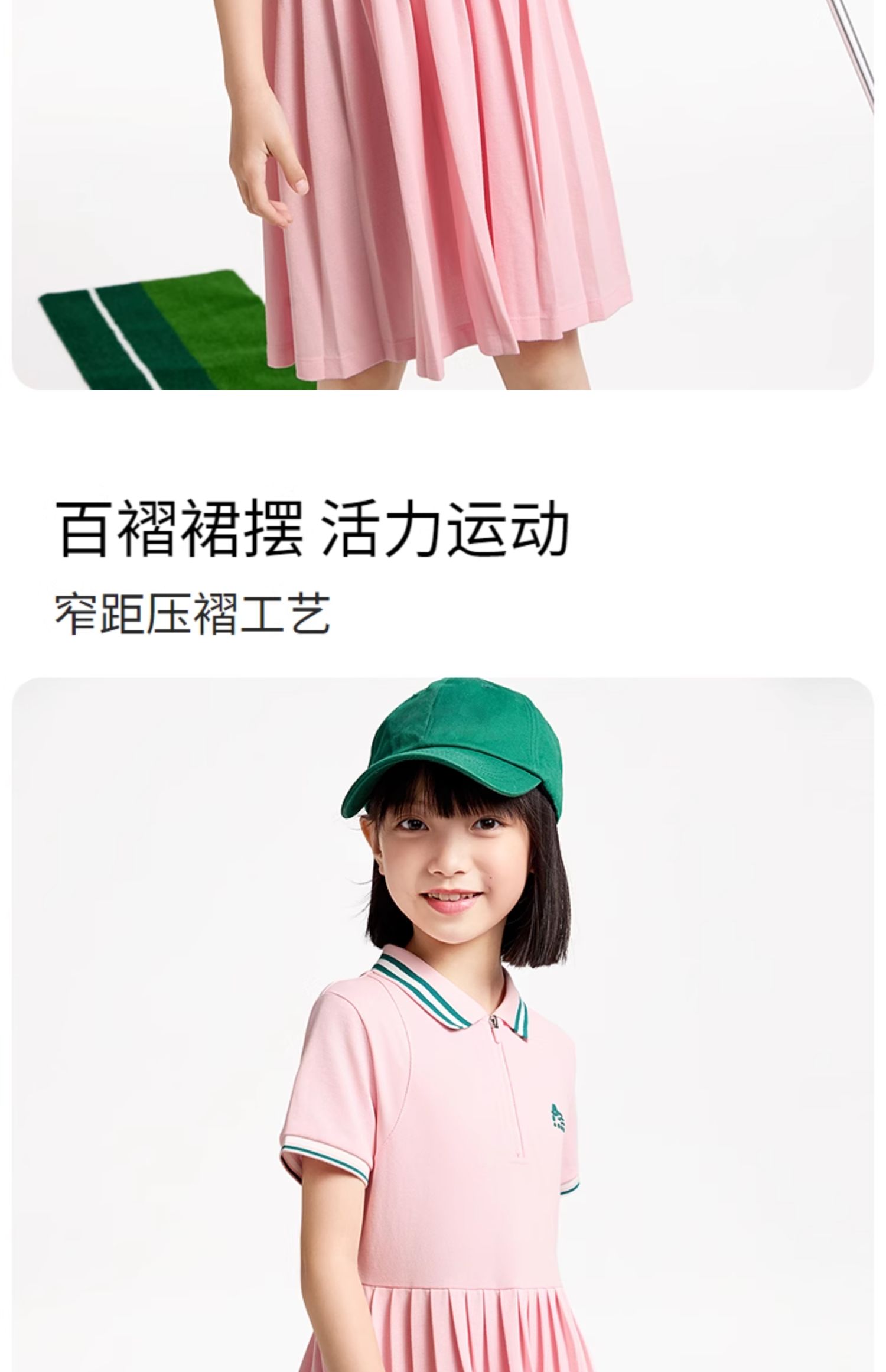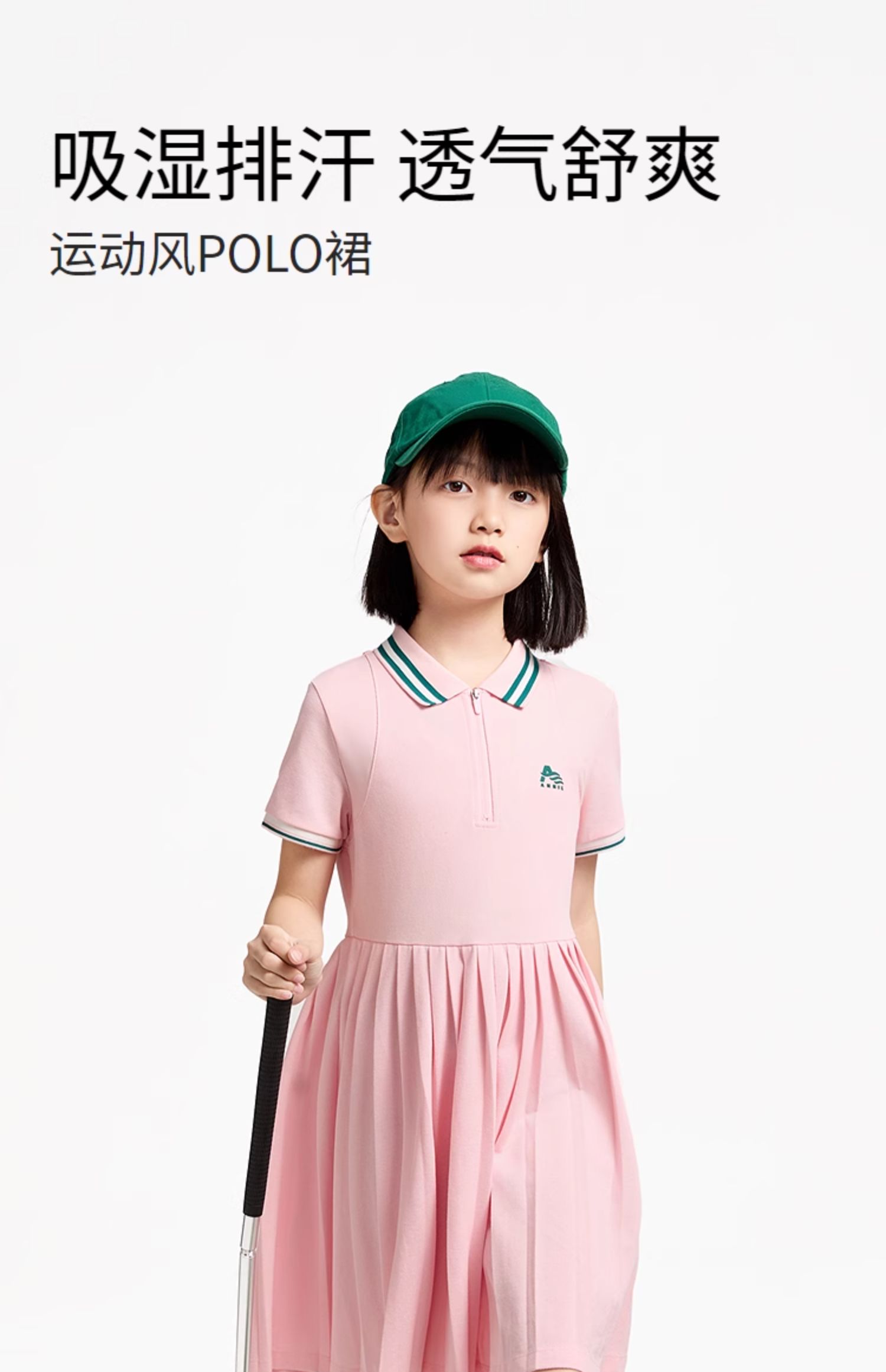 安奈兒童裝女童短袖連衣裙2025夏新款運動學院風透氣A字polo裙子