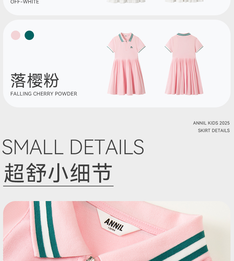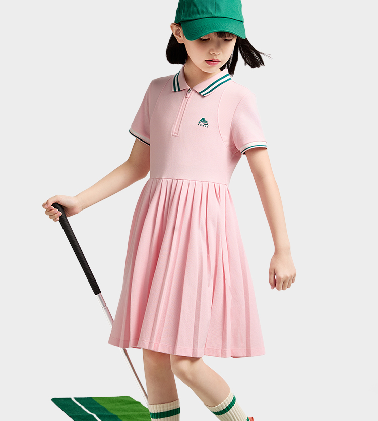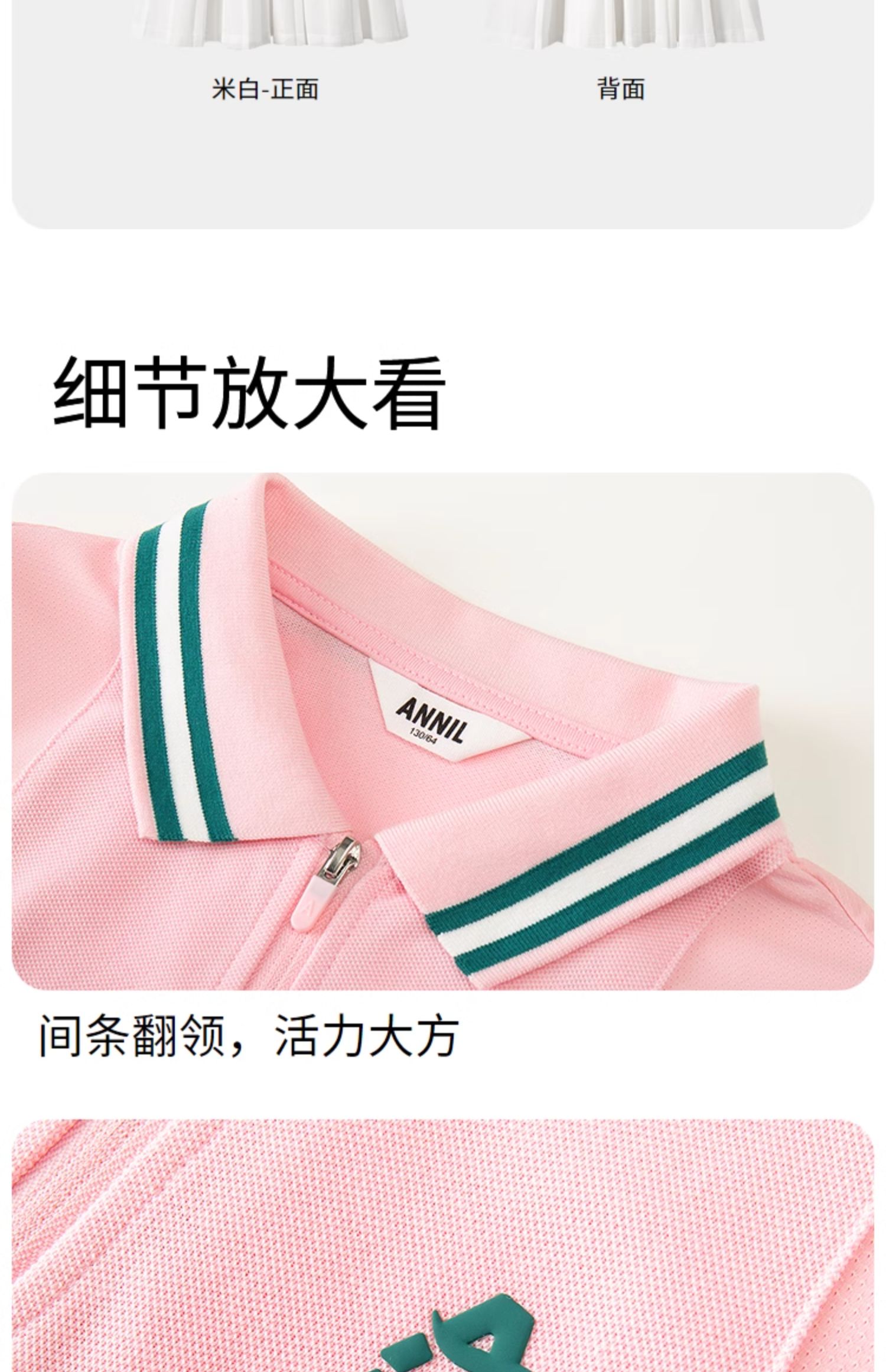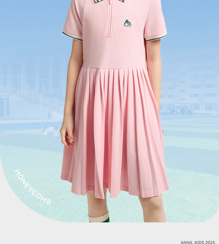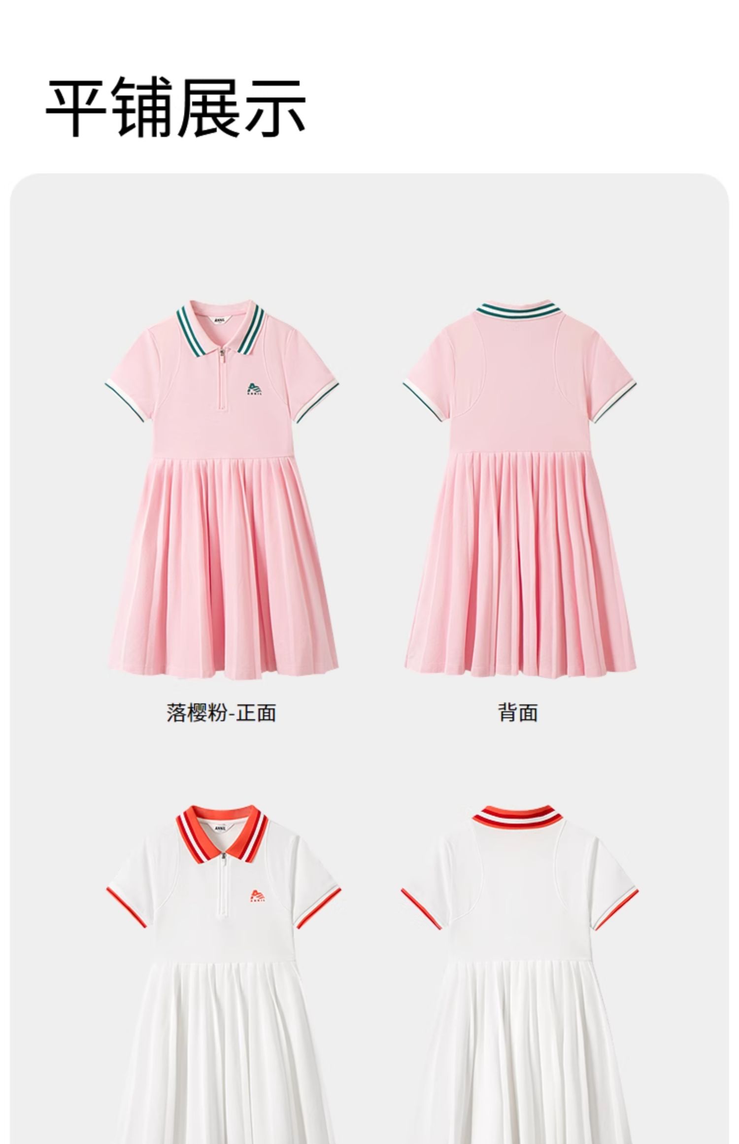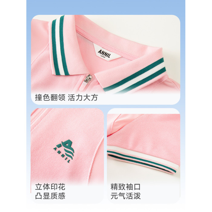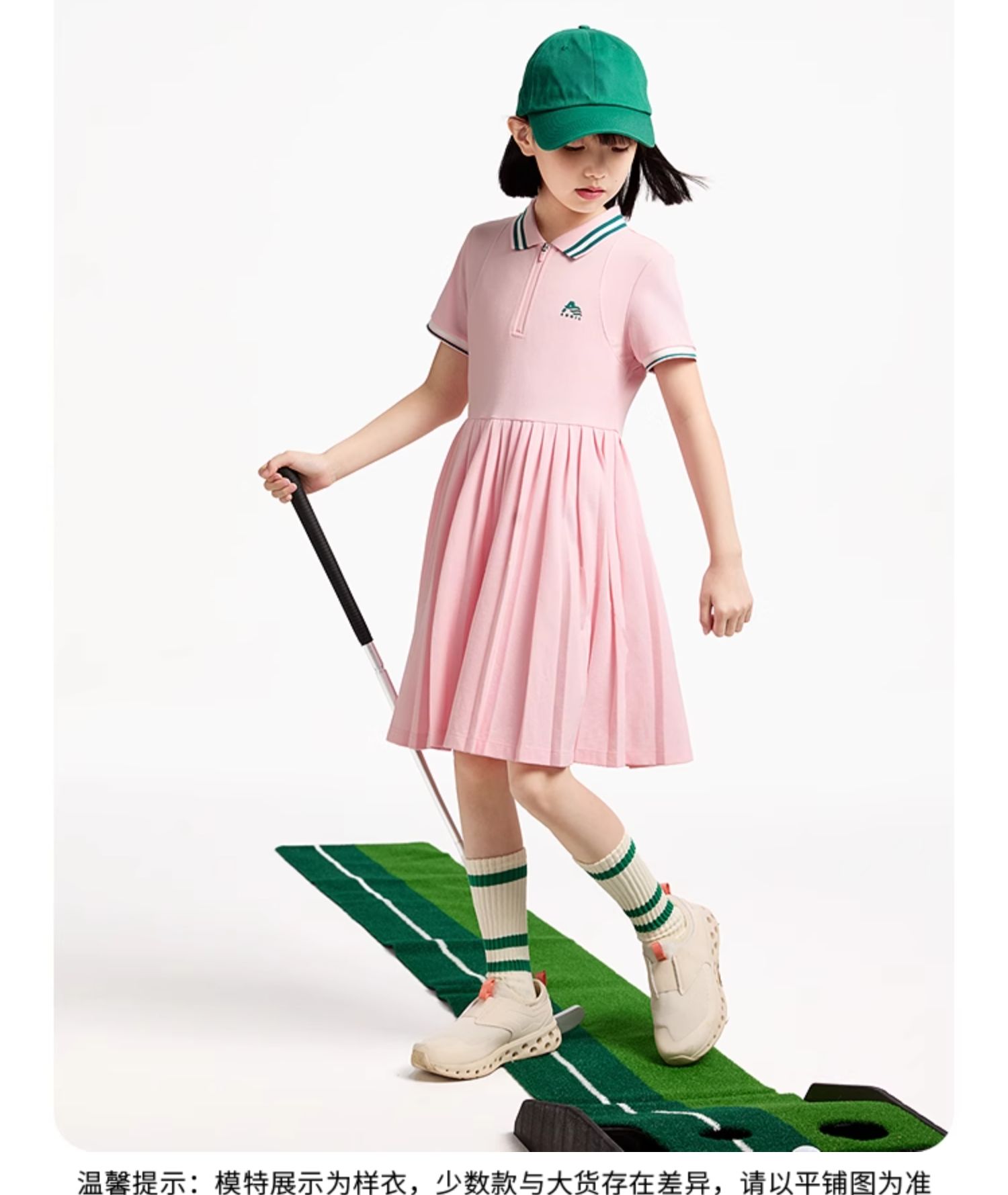 安奈兒童裝女童短袖連衣裙2025夏新款運動學院風透氣A字polo裙子