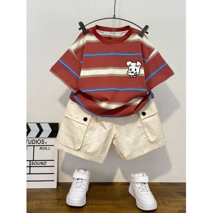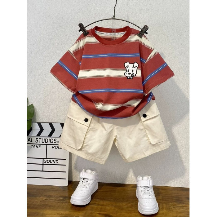 安哼安哼童裝男童短袖套裝洋氣兒童夏季兩件套薄衣服2025新款痞帥