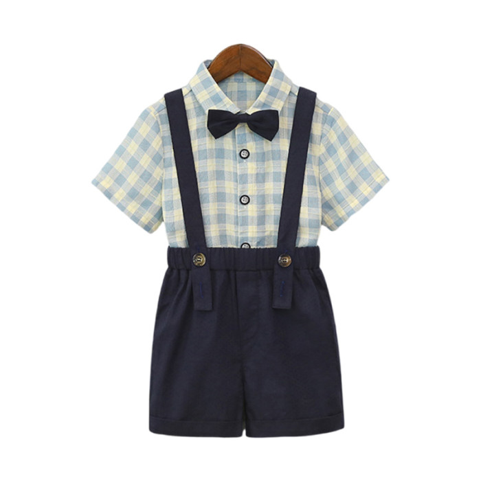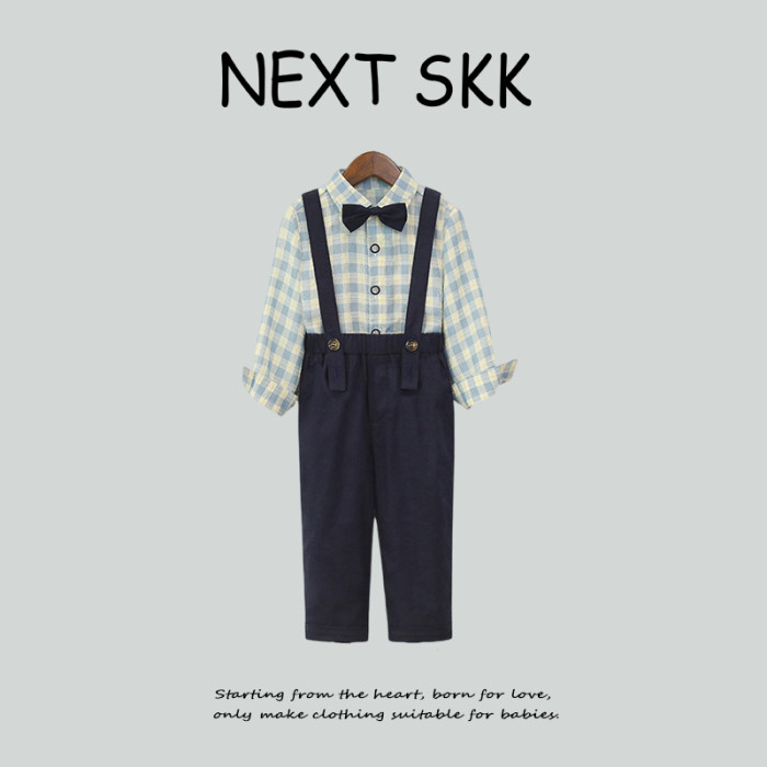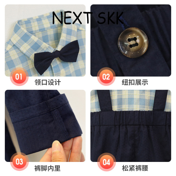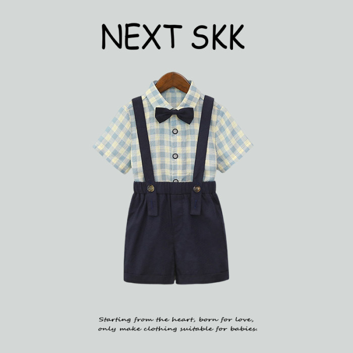 英國NEXT SKK夏季兒童格子襯衫背帶褲套裝男童周嵗禮服花童演出服
