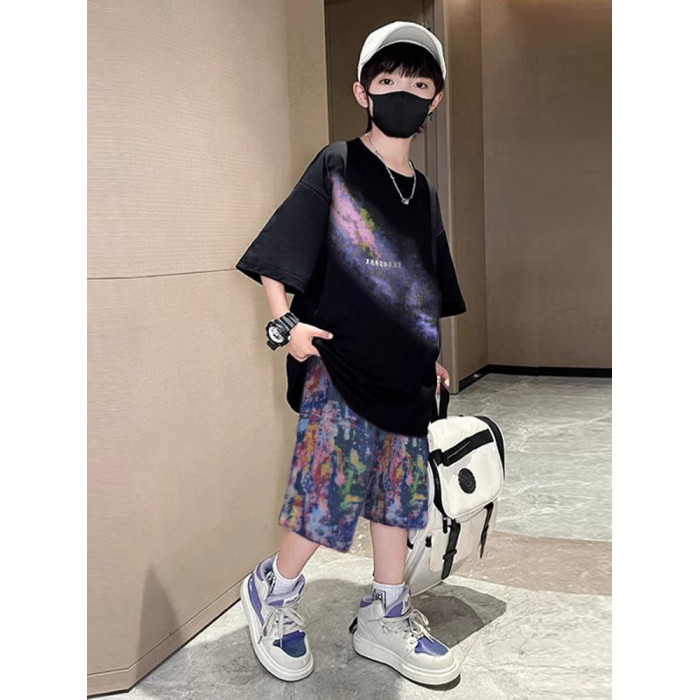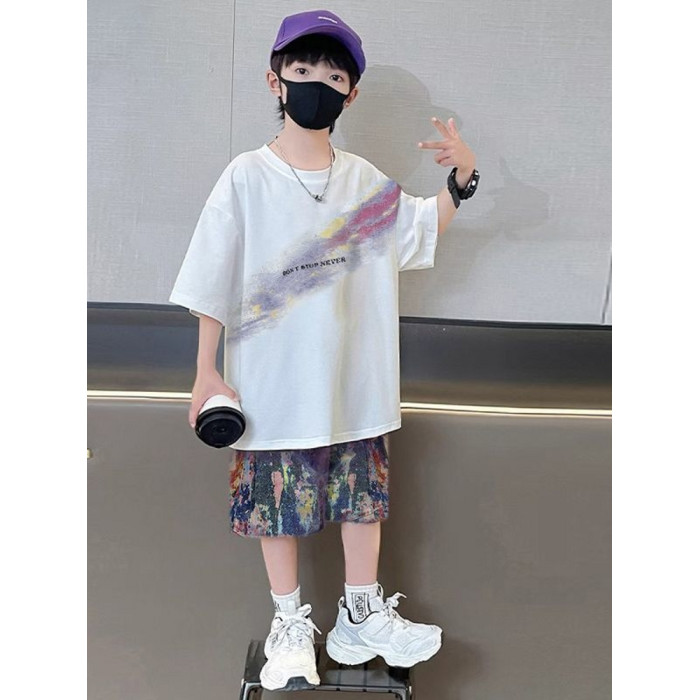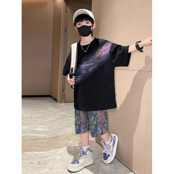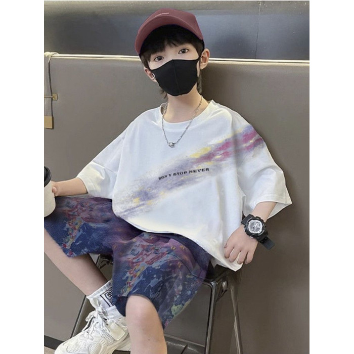 安哼安哼男童夏季套裝2025新款夏裝短袖中大兒童男孩薄款運動炸街