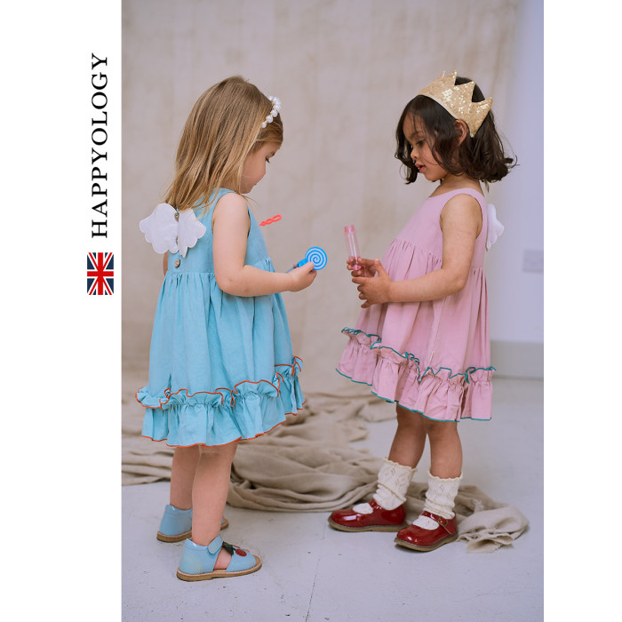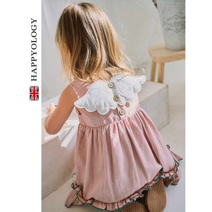 Happyology英國兒童春夏裝新款裙子女童童裝立體翅膀撞色邊連衣裙