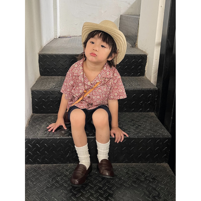 男童冰絲襯衫2025新款夏薄款兒童時髦沙灘度假透氣碎花上衣