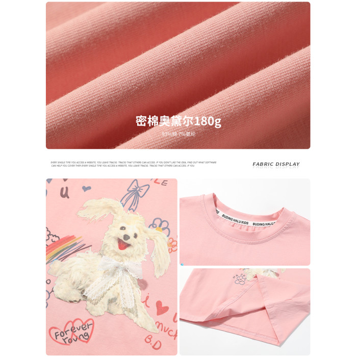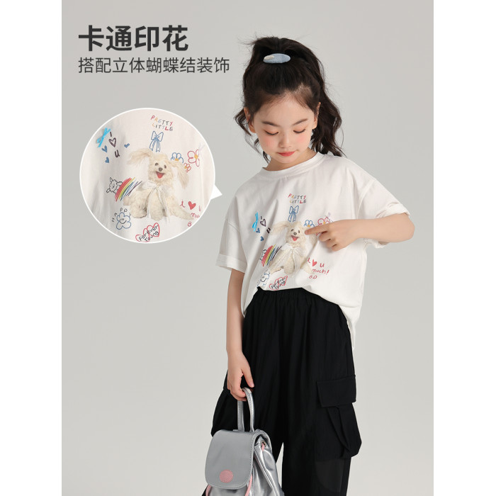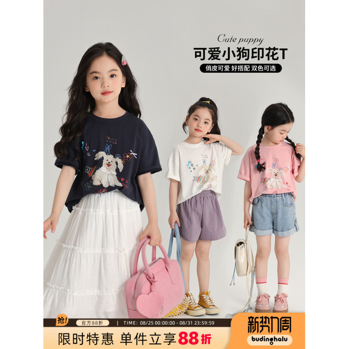 布丁哈魯夏裝女童夏季打底衫2025新款兒童卡通圓領短袖T恤