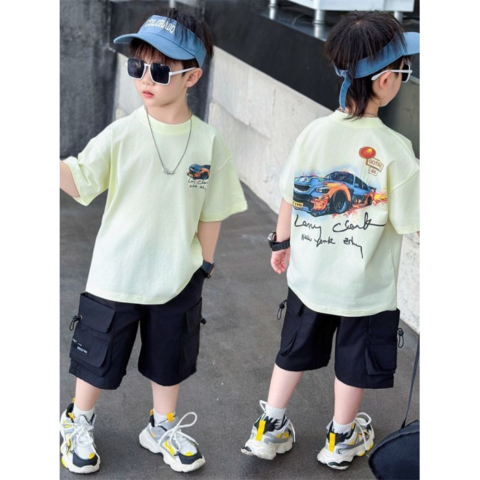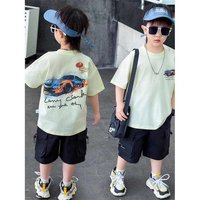 安哼安哼男童夏季套裝2025新款夏裝帥氣時髦寶短袖短褲衣服兒童夏