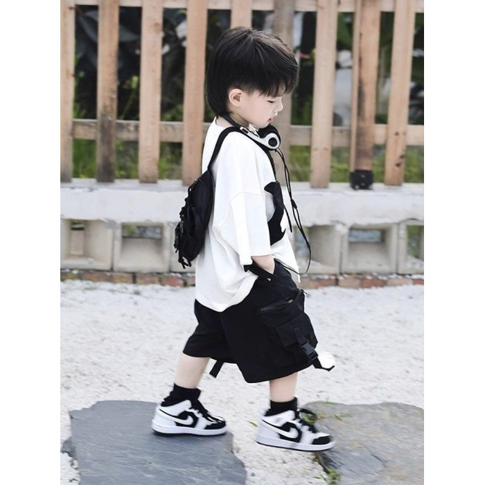 安哼安哼短褲工裝褲新款2025潮流夏季帥氣外套韓版中小童男童兒童