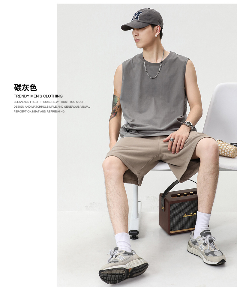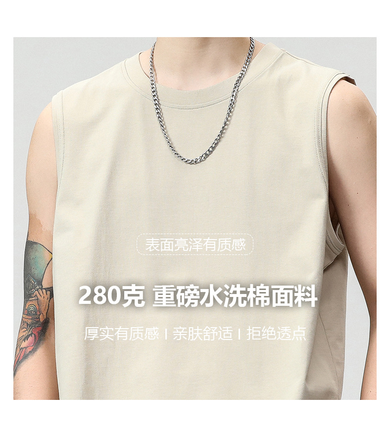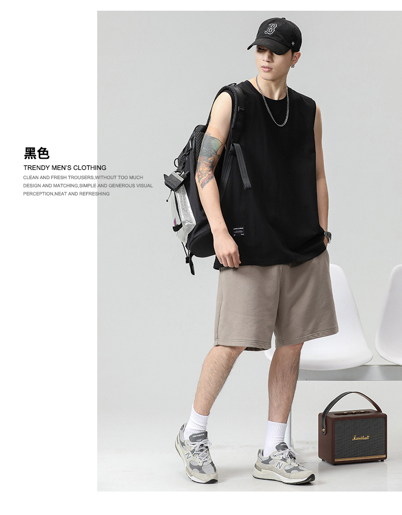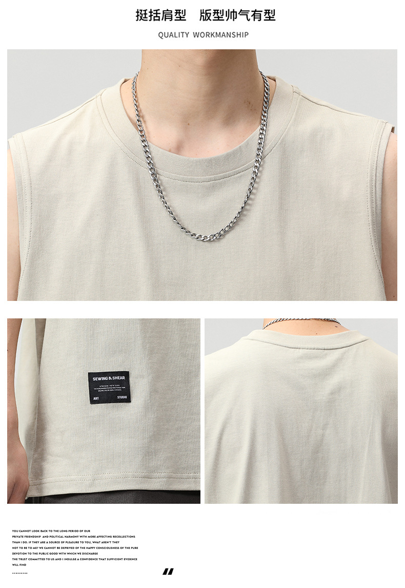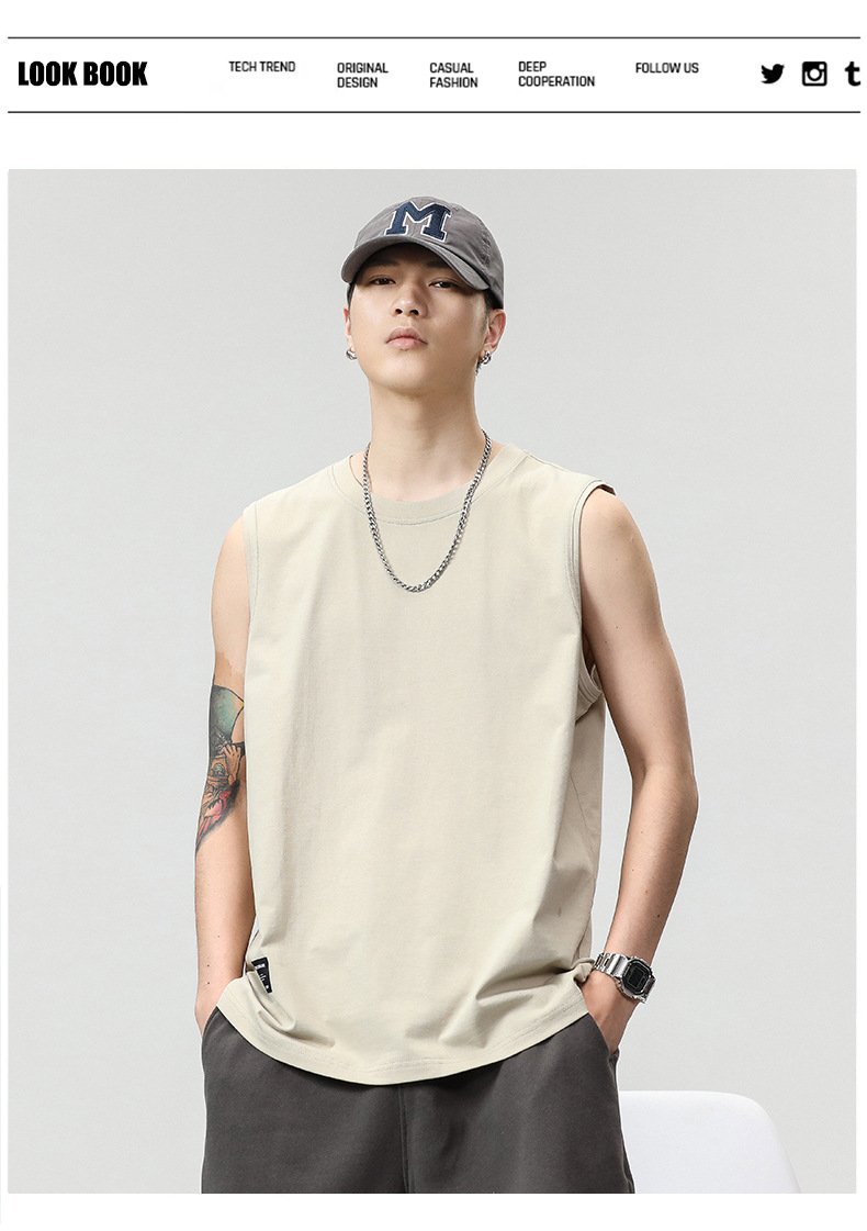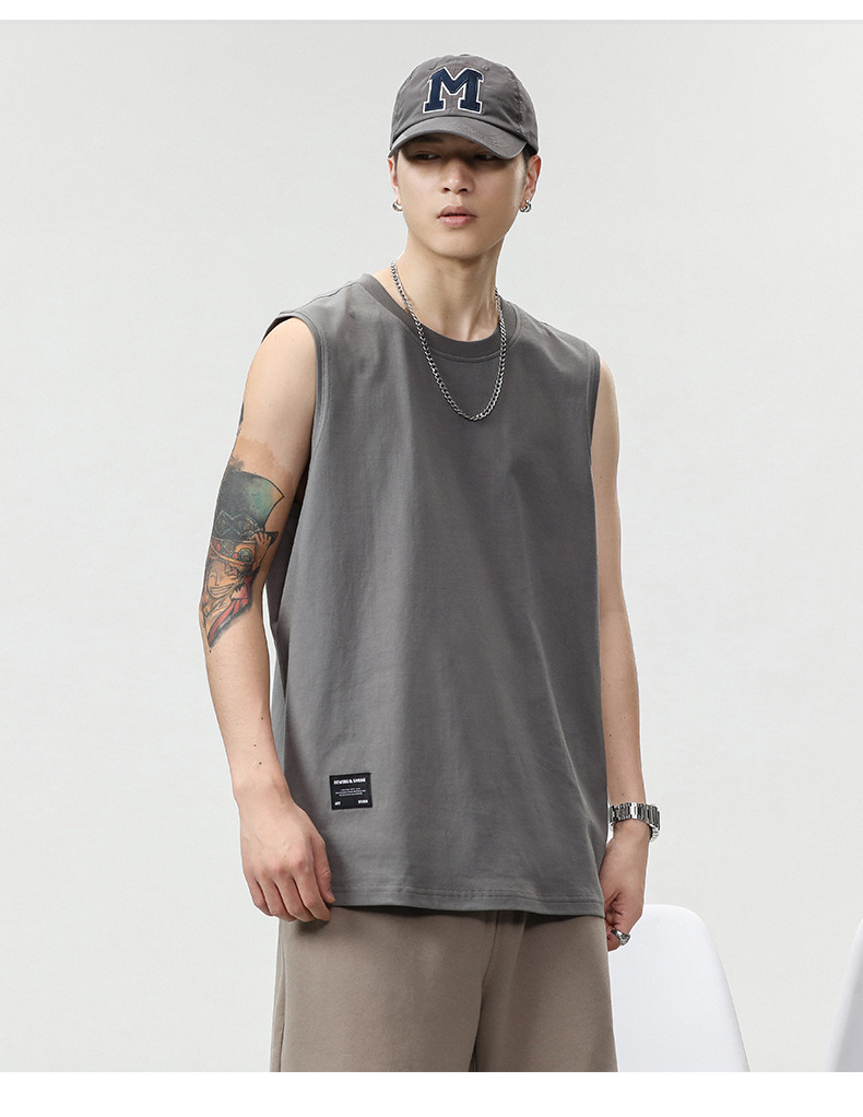 Hungry Artist新款純色背心重磅純棉運動籃球坎肩寬松夏季無袖T恤