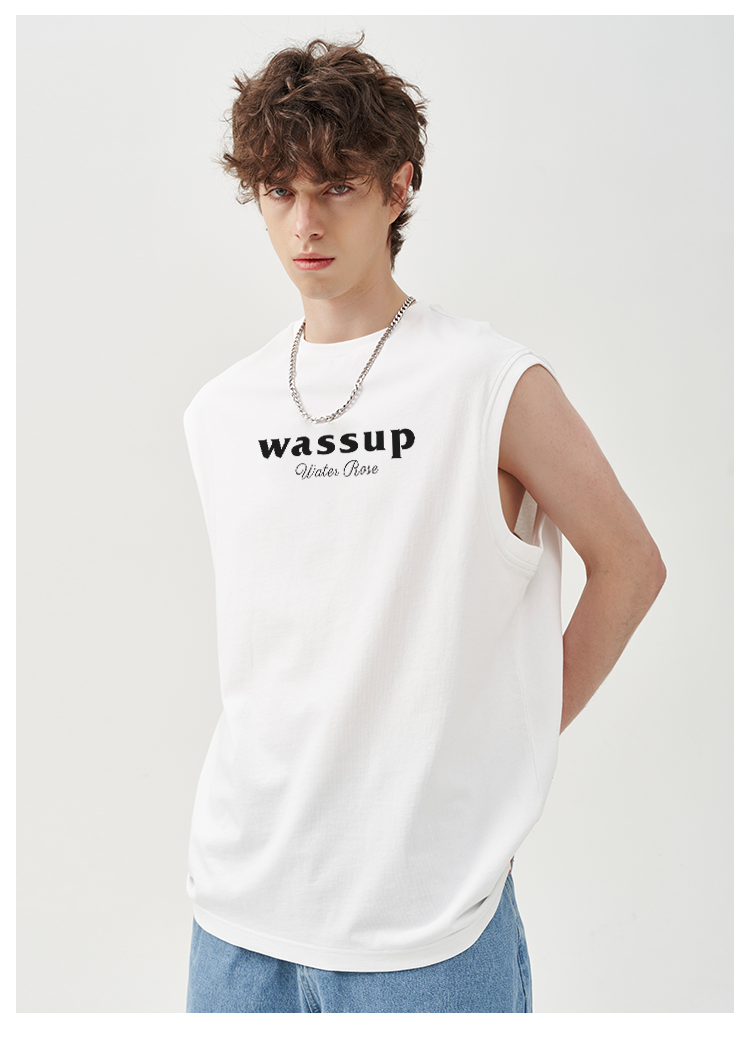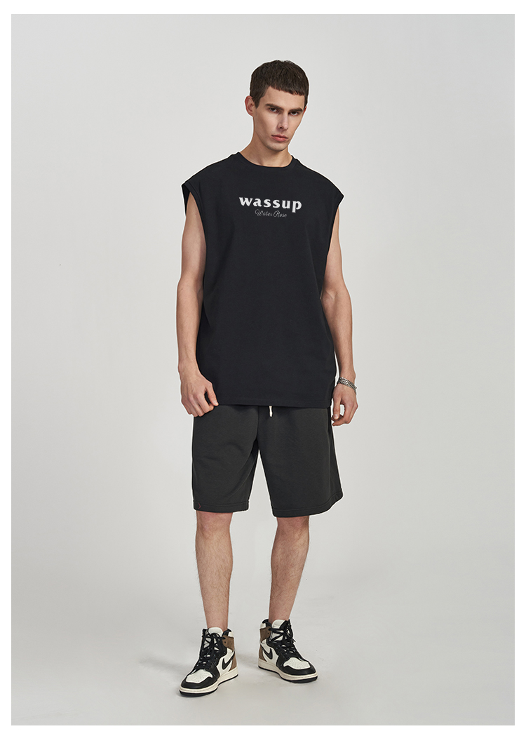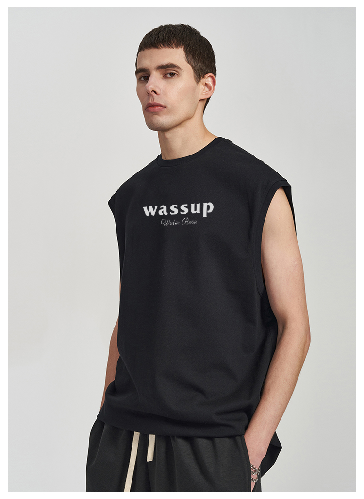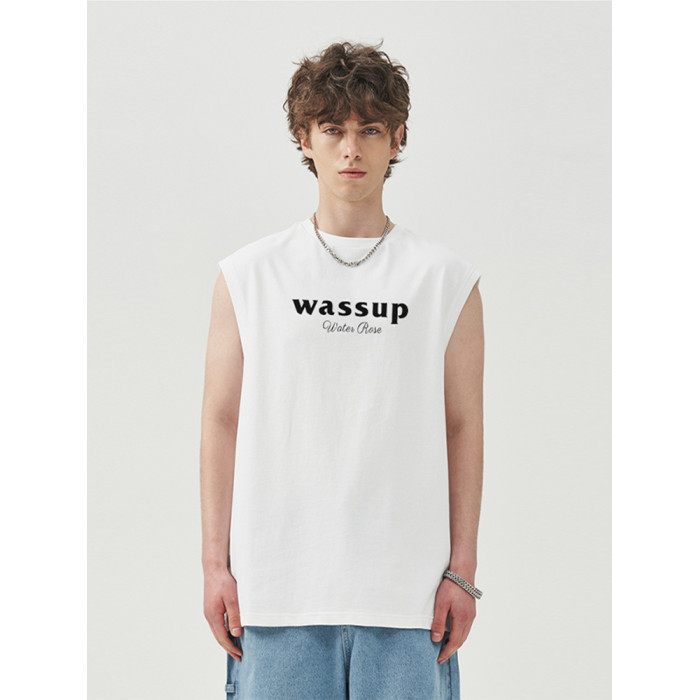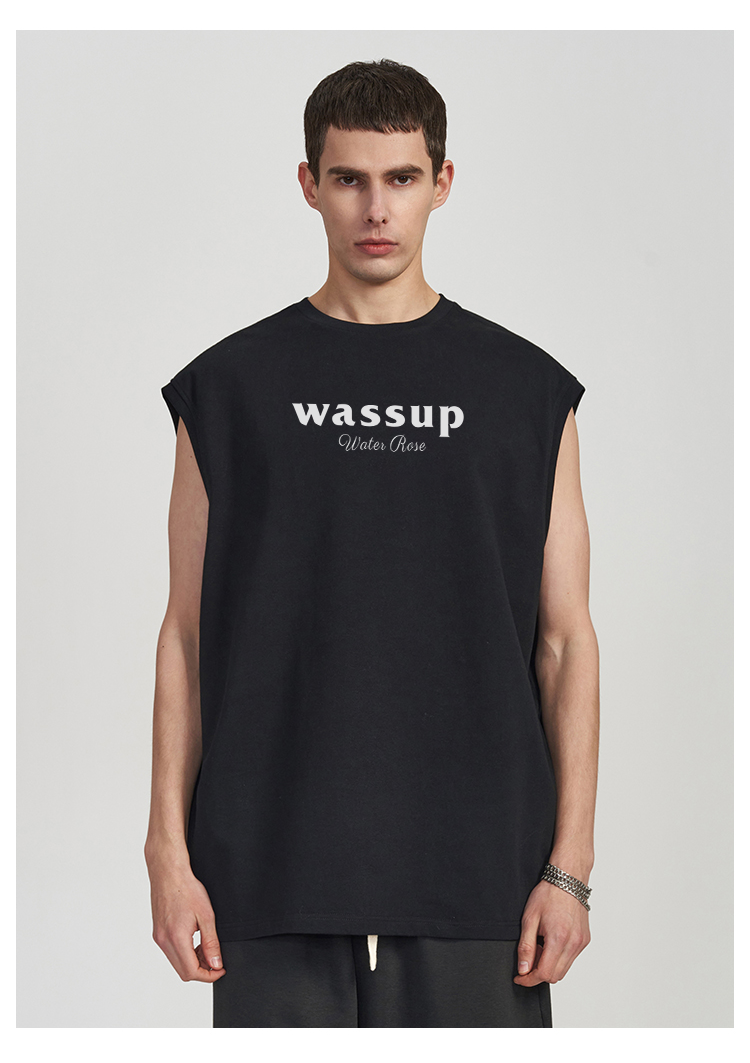 WASSUP HEODS美式重磅復古潮牌高街無袖背心男士夏季上衣運動健身