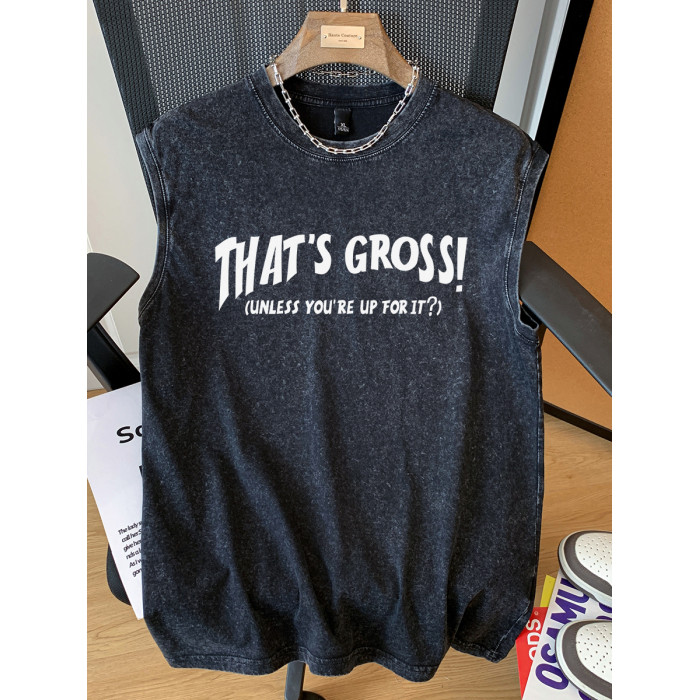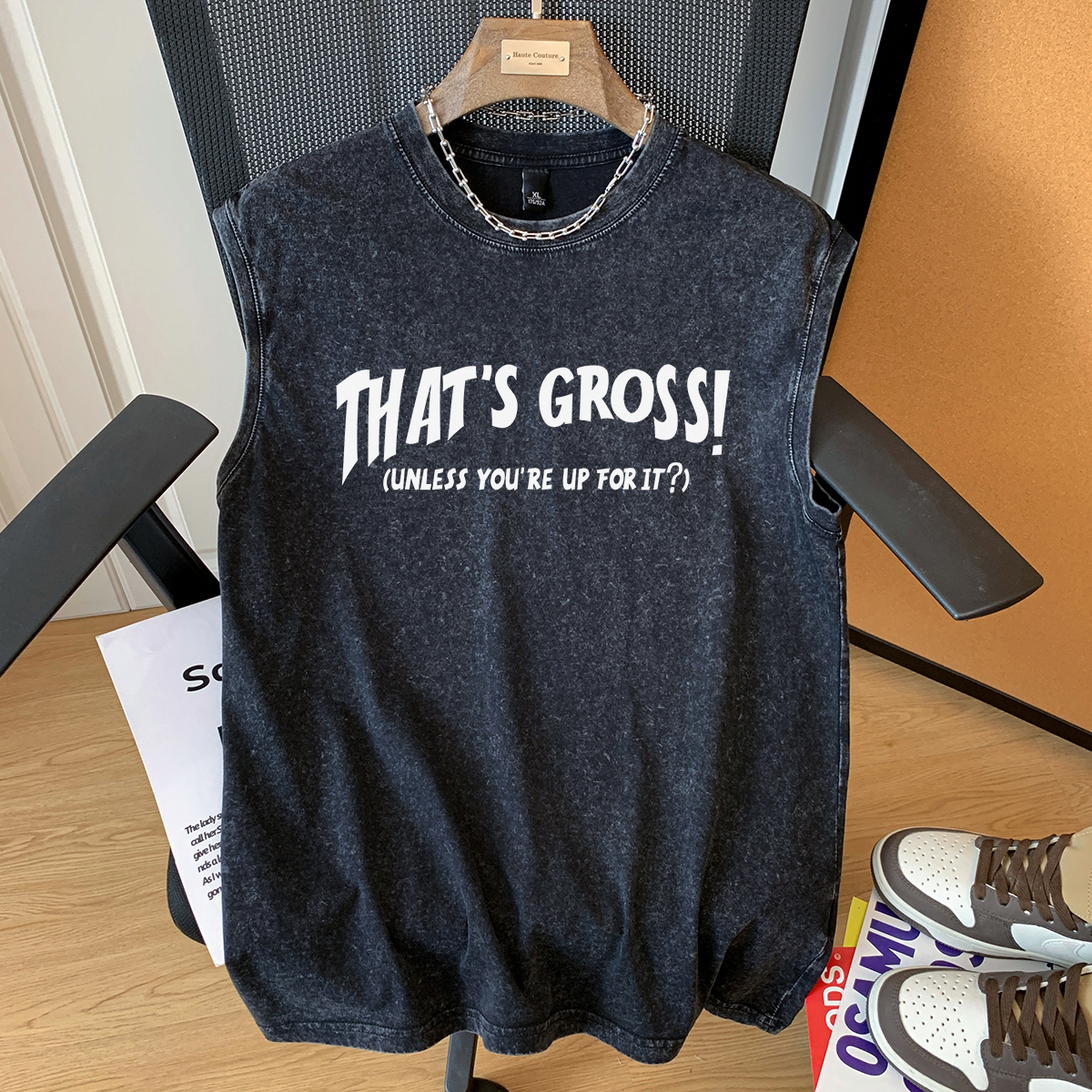 JIAF男生水洗做舊無袖背心t恤重磅潮牌美式復古純棉寬松涼感上衣