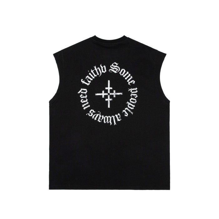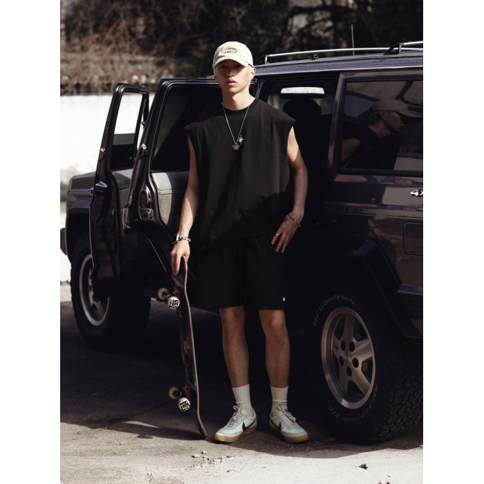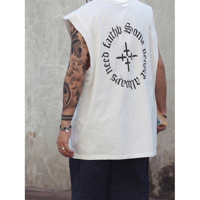 2025夏季新款日系復古寬松無袖t恤美式街頭汗衫印花運動背心男潮
