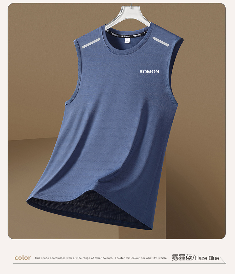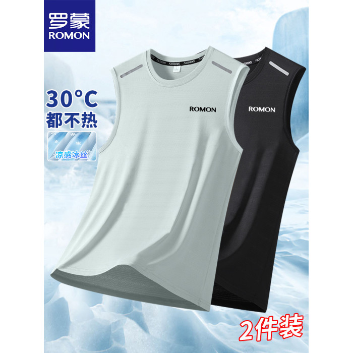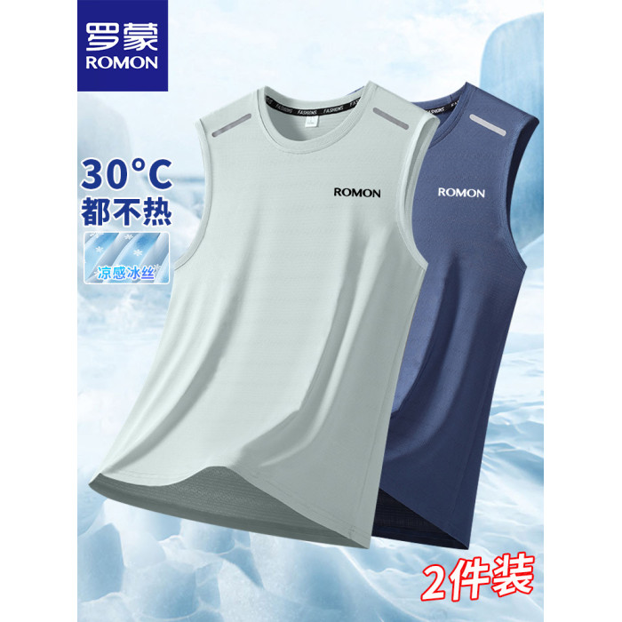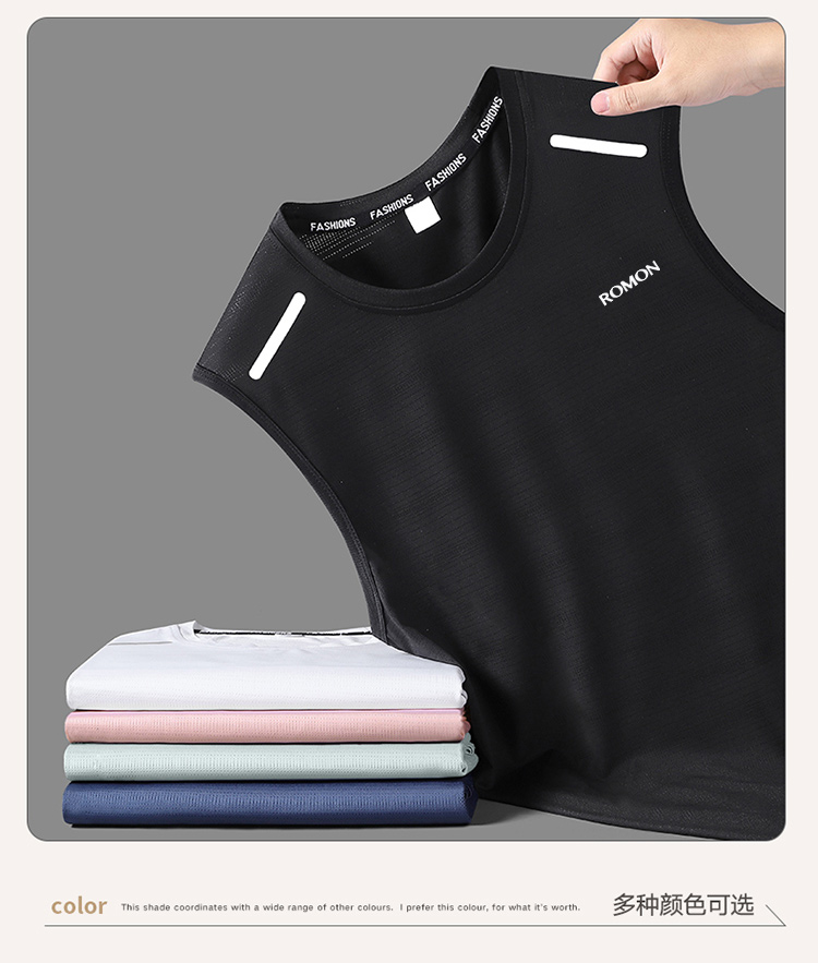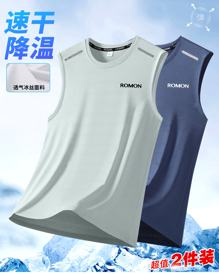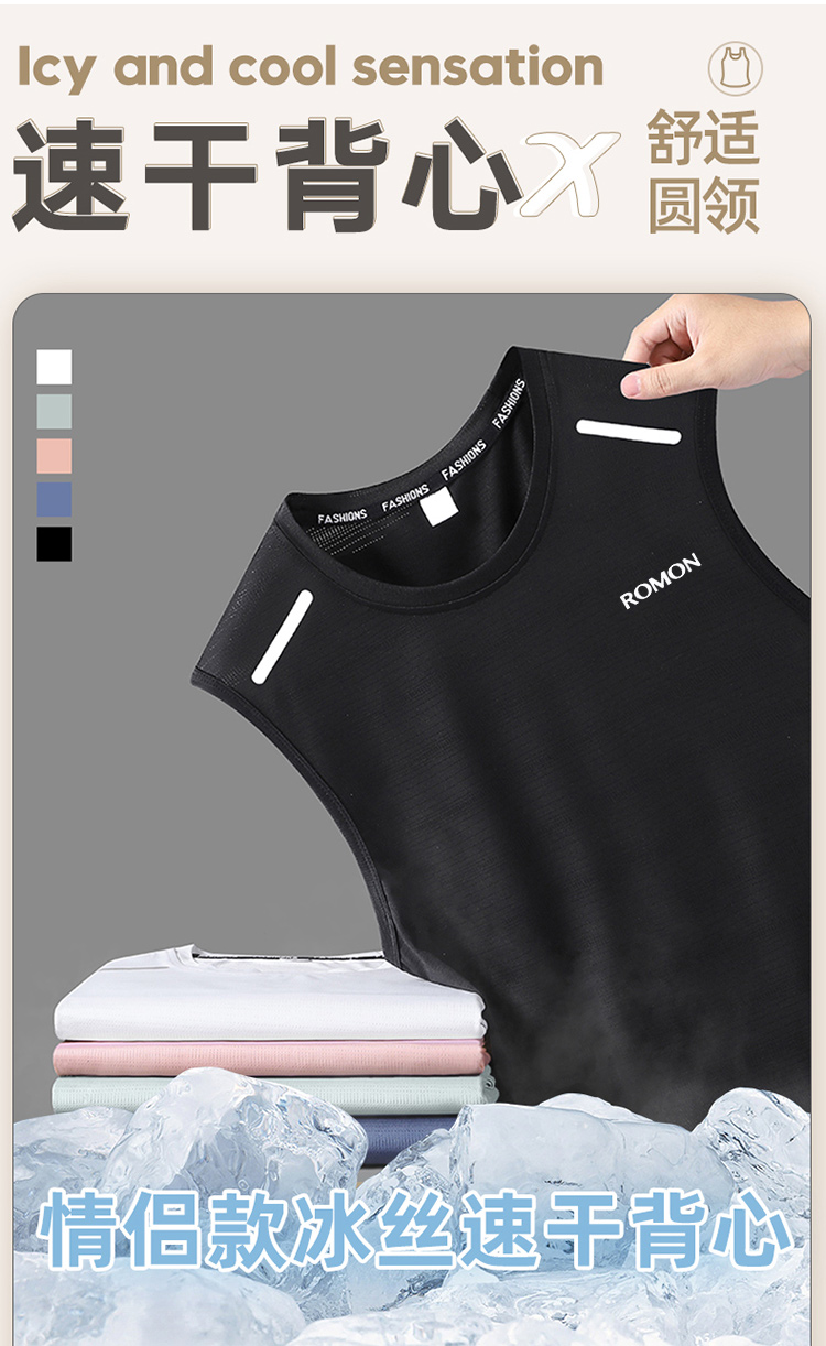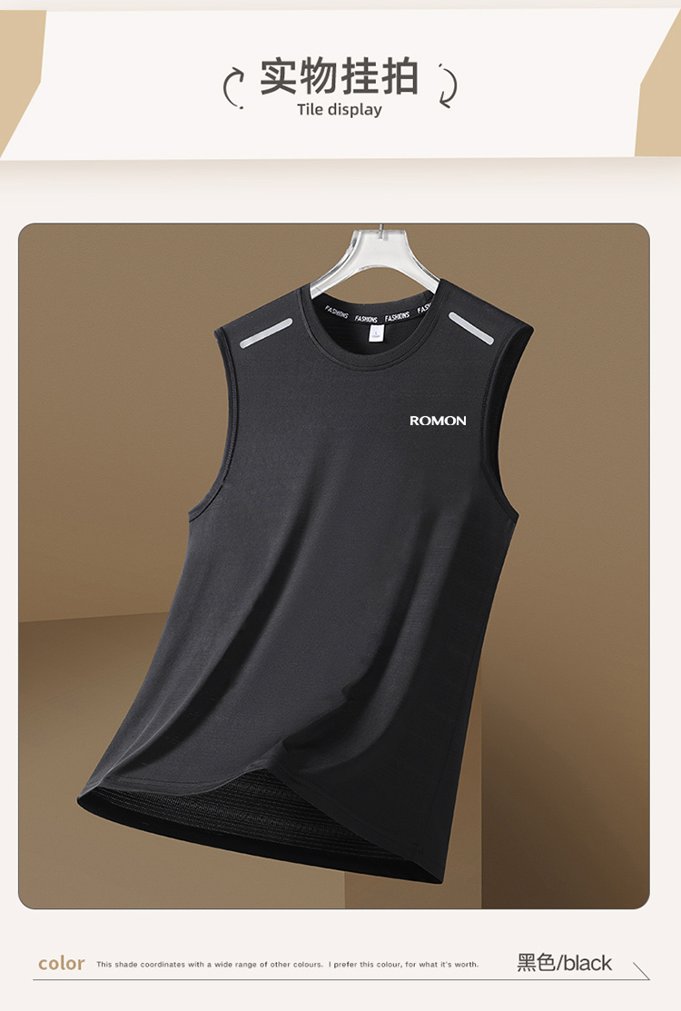 羅矇背心男士夏季新款戶外運動休閒健身衣寬松大碼冰絲速乾T恤男