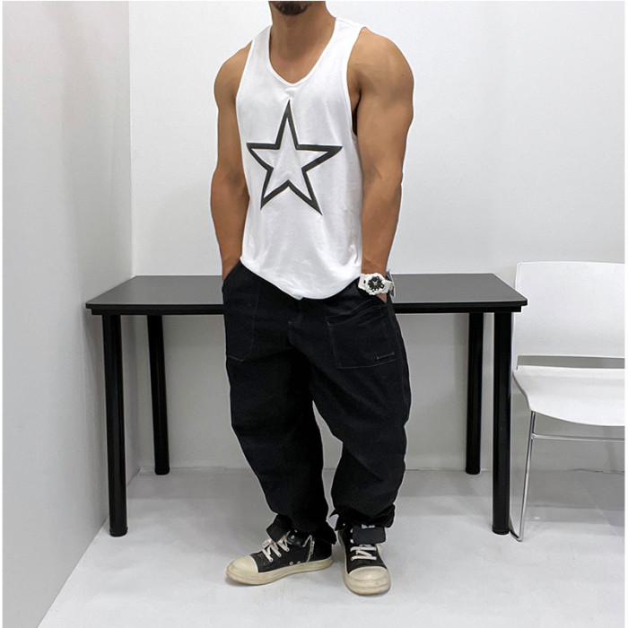 簡約設計!優良成衣純棉全棉運動背心無袖T恤肌肉男顯身材寬松壯