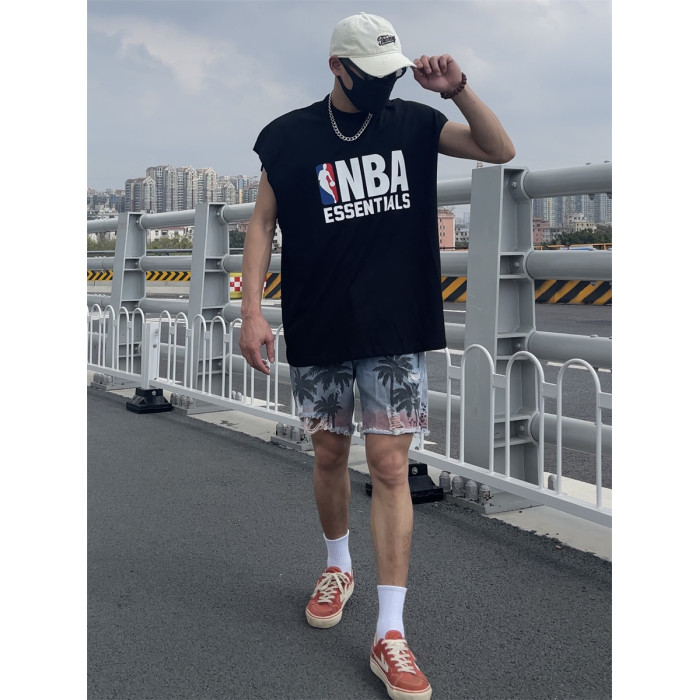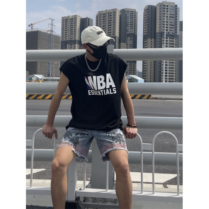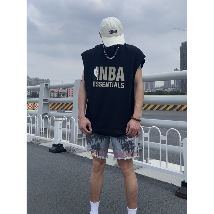 NBA限定聯名FOG復線ESSENTIALS矽膠字母印花男女寬松無袖美式背心