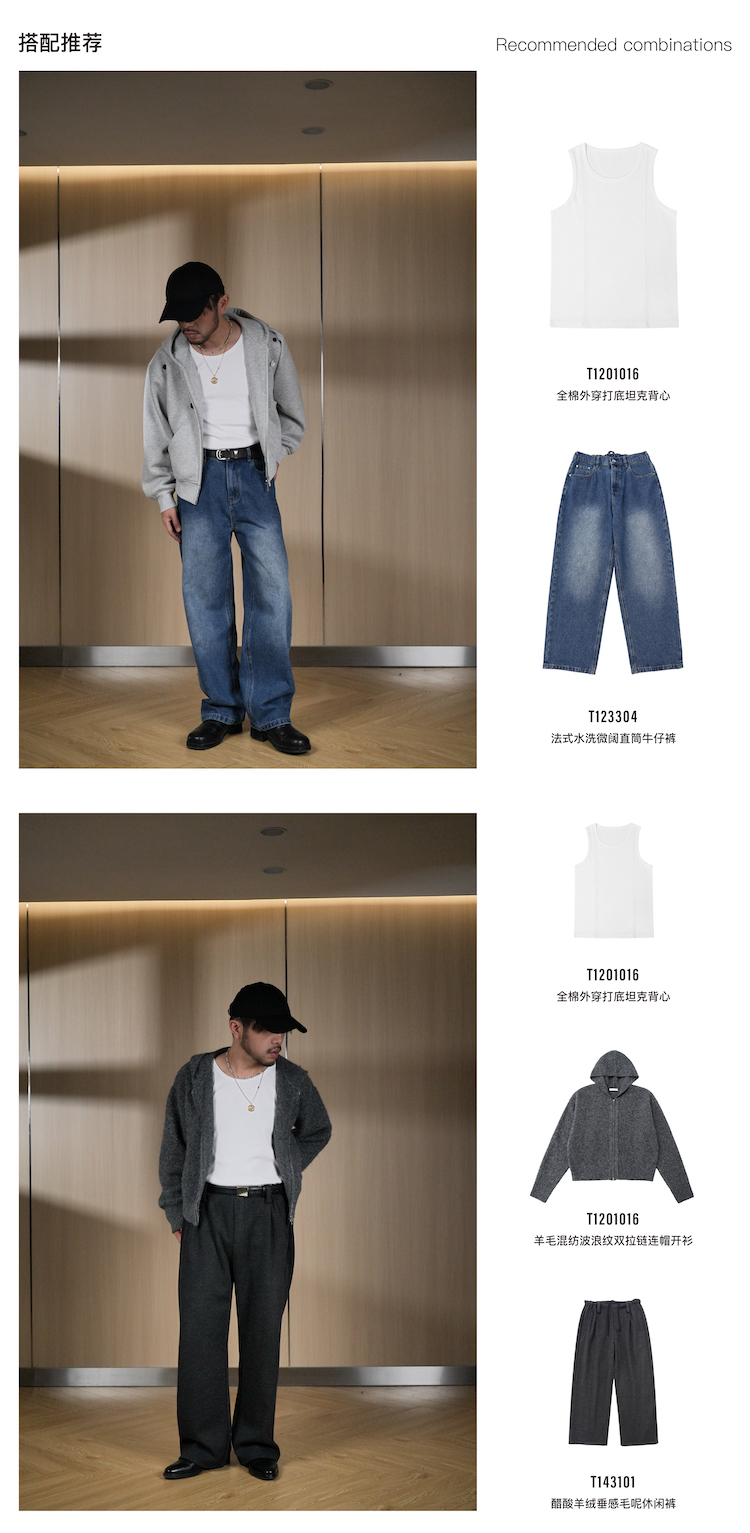 TIAS 坦克背心全棉外穿打底粗螺紋T1201016