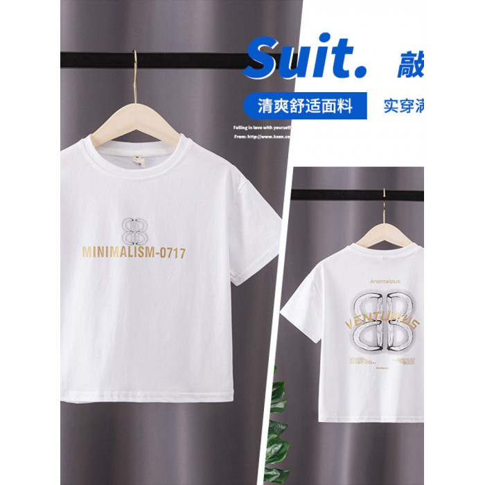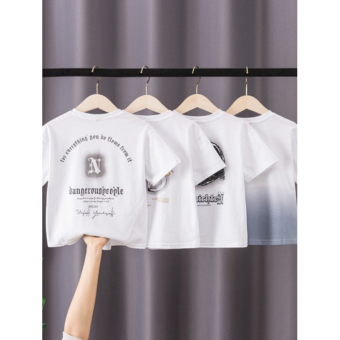 安哼安哼2025新款男童短袖T恤男孩純棉白t夏季寶上衣薄款半袖單件