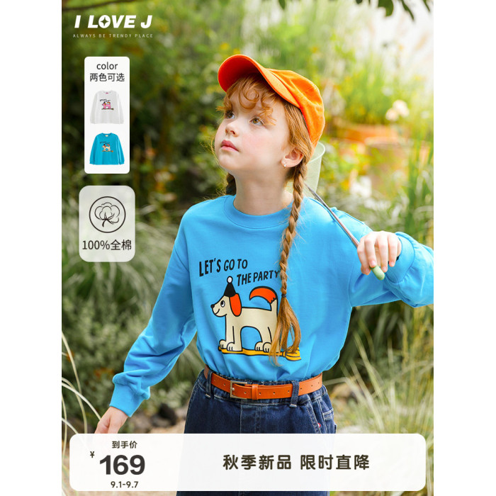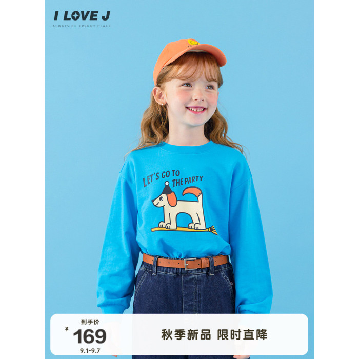 ILOVEJ韓國童裝2025秋季新款女童小狗衛衣長袖純棉T恤上衣JXFTO15