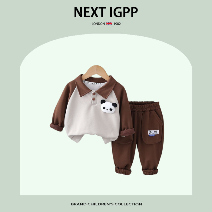 英國NEXT IGPP 男童秋季套裝男童春秋款洋氣國寶熊貓運動服兩件套