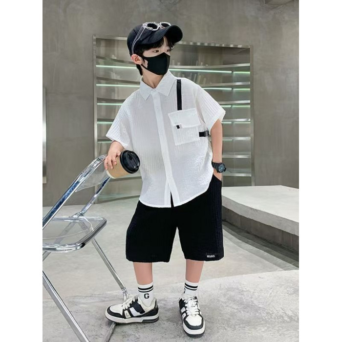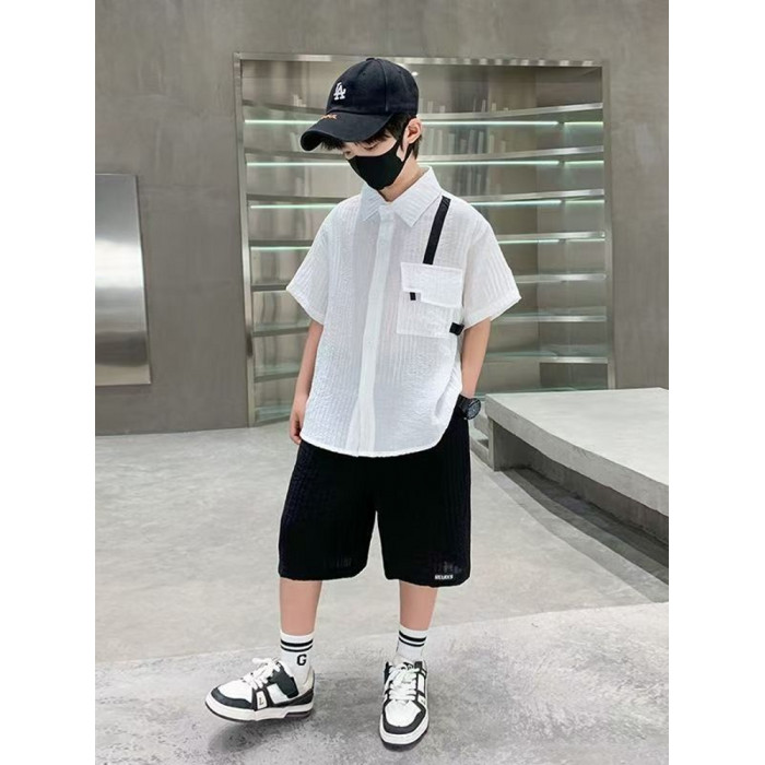 安哼安哼男童夏裝套裝2025新款兒童夏季薄款短袖襯衫中大童夏款洋