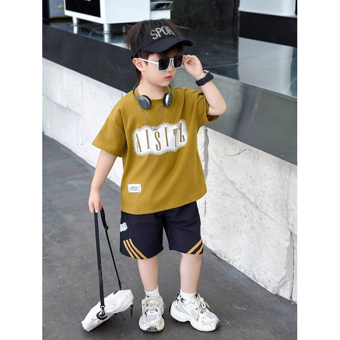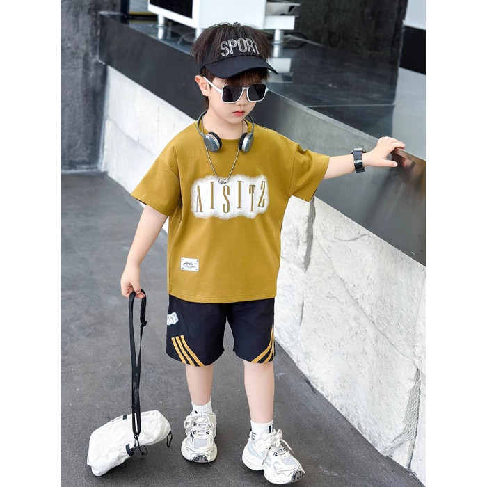 英國Next kiss男童套裝2025新款兒童夏季純棉酷帥時尚休閒兩件套