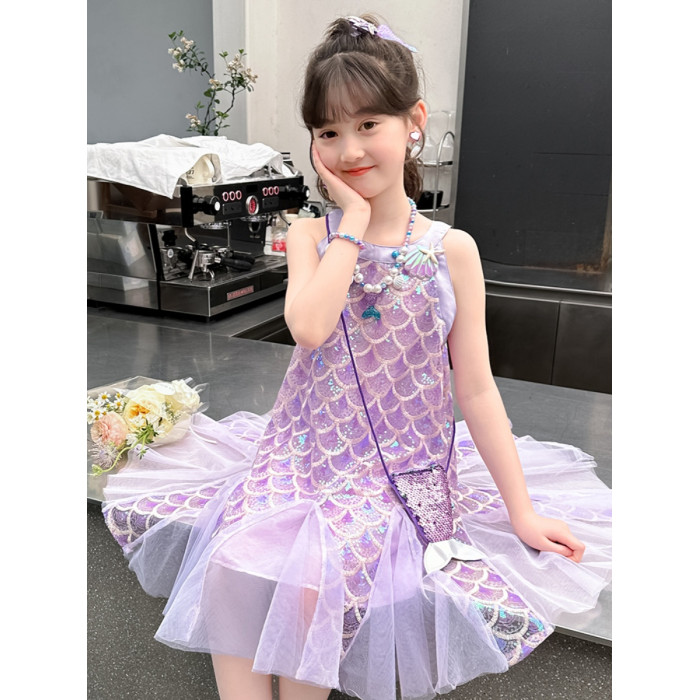英國Next Svip兒童美人魚公主裙女童連衣裙2025新款女孩背心裙夏