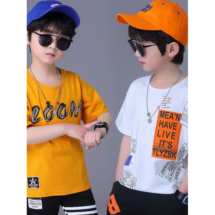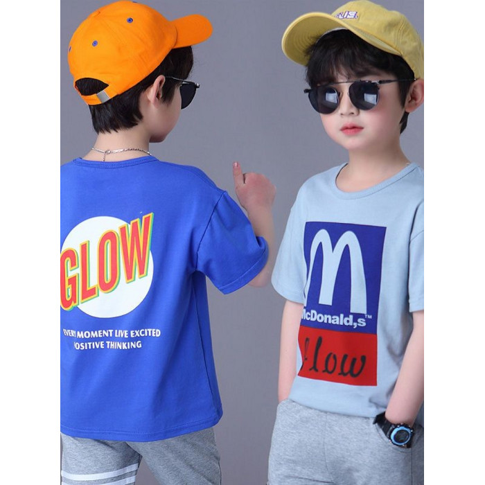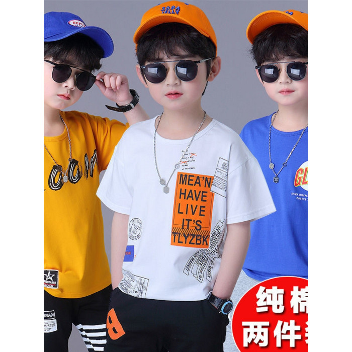 安哼安哼男童短袖純棉T恤2025新款夏季兒童寬松半袖上衣中大童男
