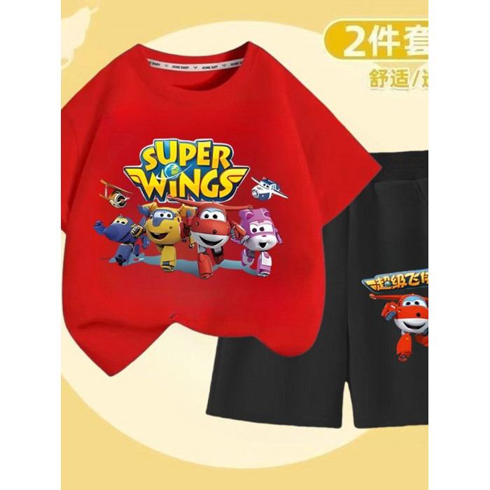 安哼安哼男童純棉兒童短袖短褲帥氣套裝2025新款超級夏季飛俠兩件