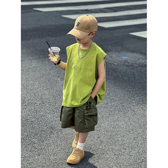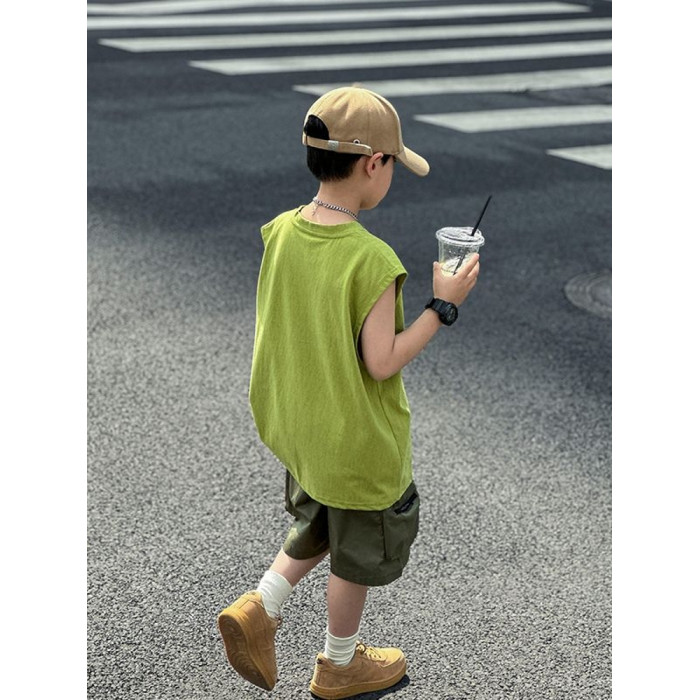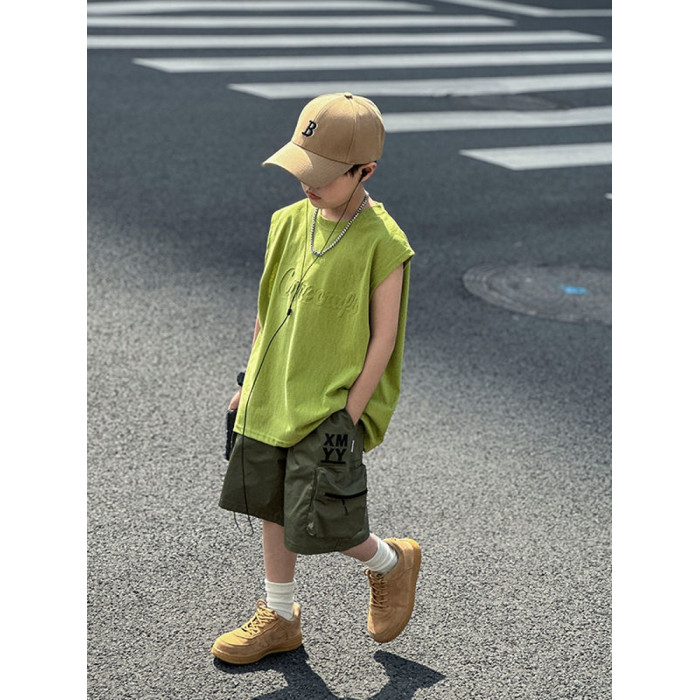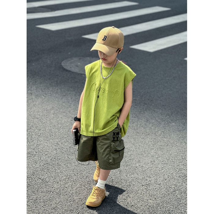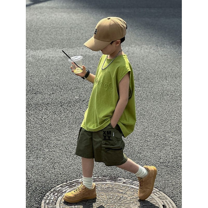 安哼安哼兒童裝男童夏裝背心套裝2025新款帥氣無袖中大童坎肩短褲