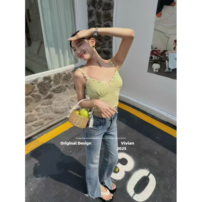 一慄莎子~設計感純欲V領無袖小背心女2025年修身顯瘦百搭吊帶上衣