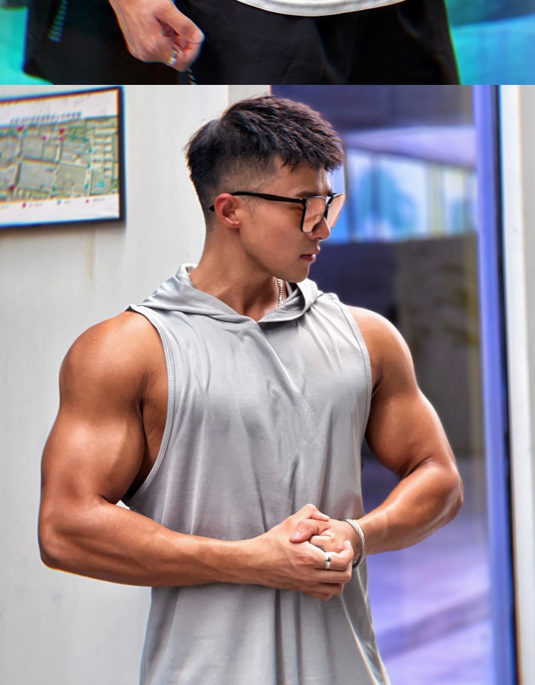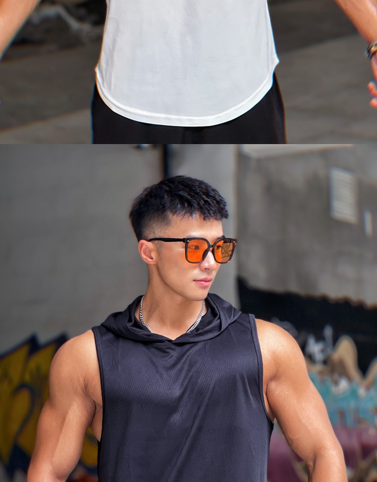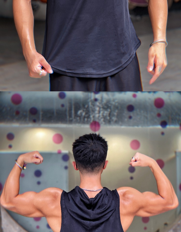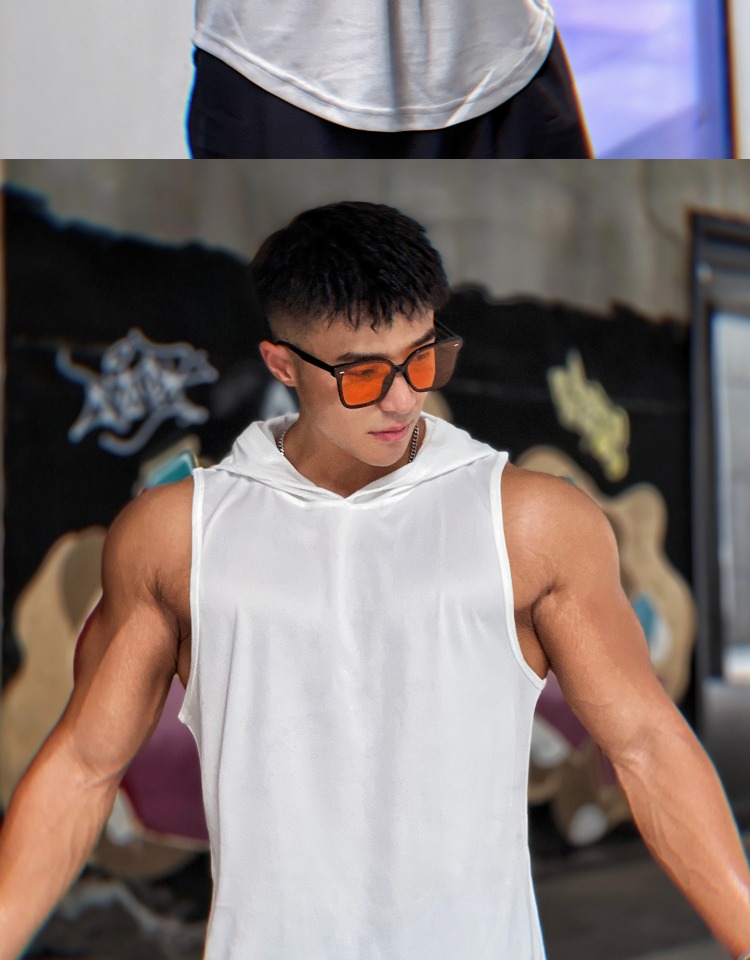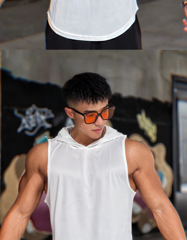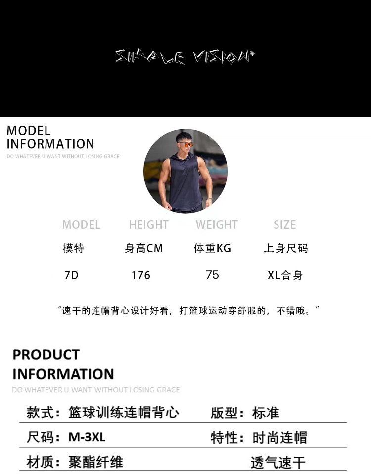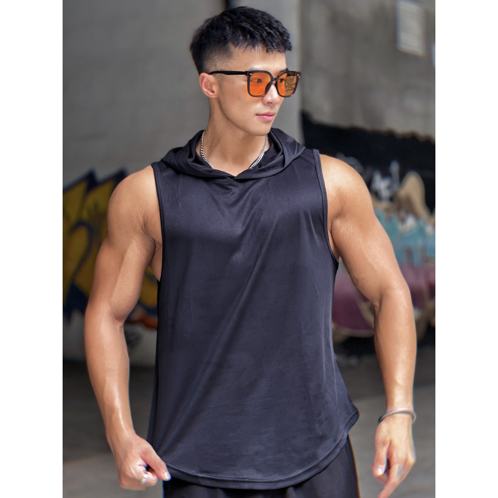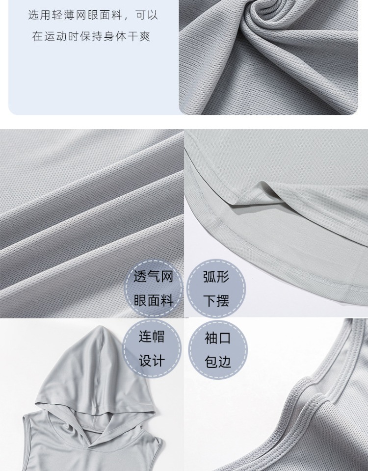夏季美式純色百搭運動無袖連帽衫男透氣訓練健身無袖坎肩速乾背心
