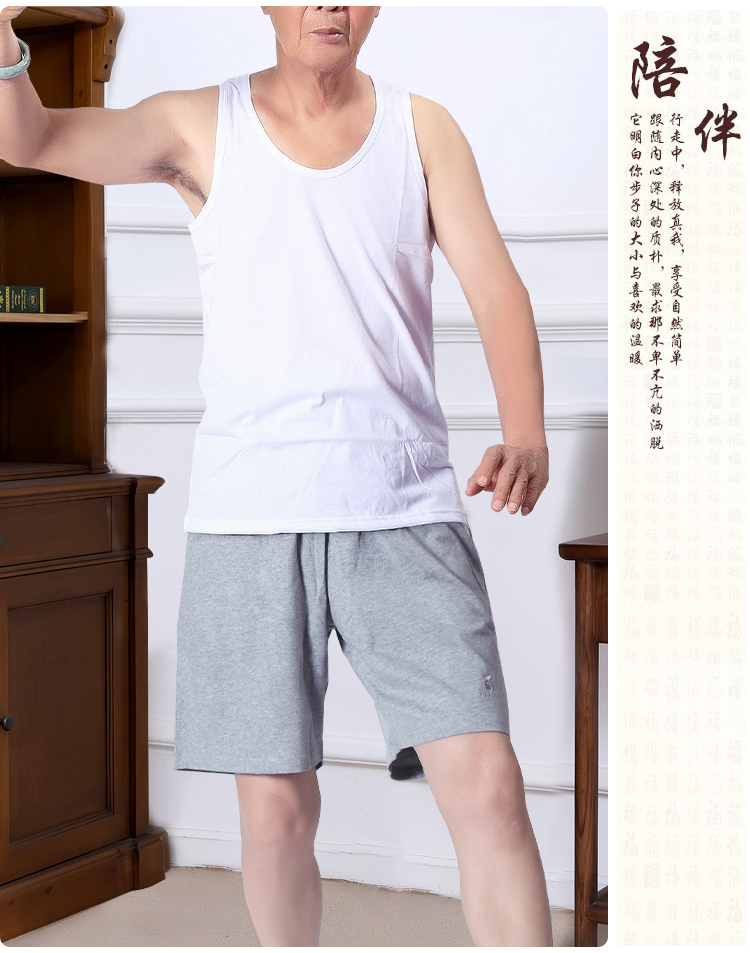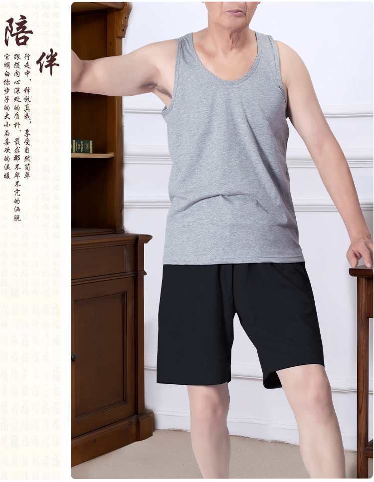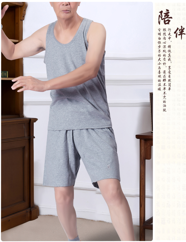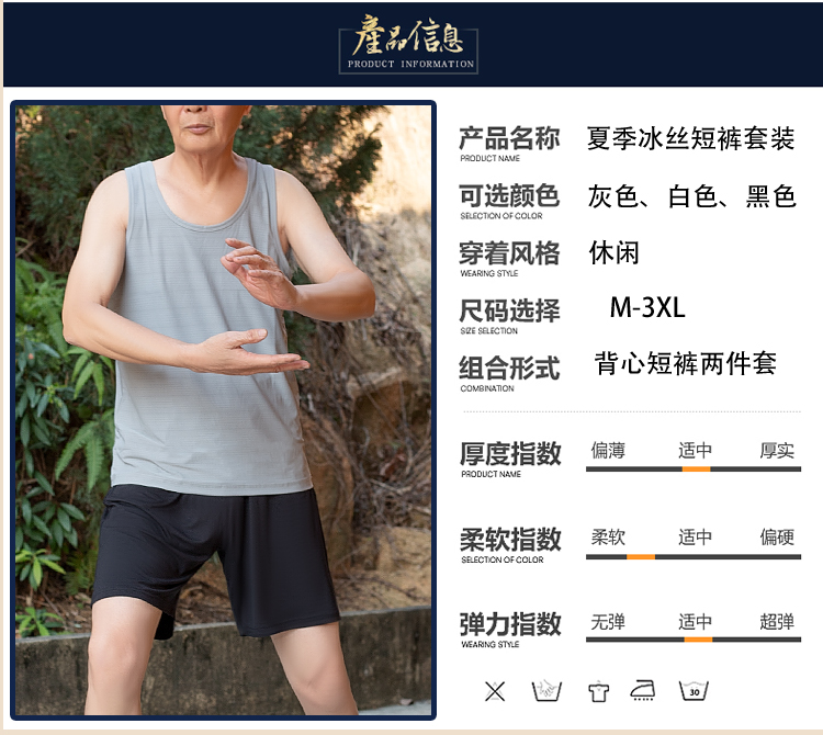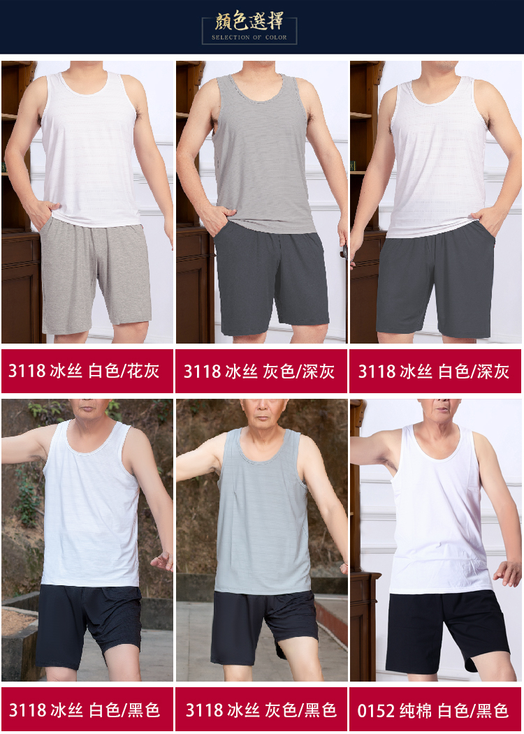 夏季冰絲爸爸背心短褲套裝男寬松中老年人爺爺睡衣老人跨欄老頭衫