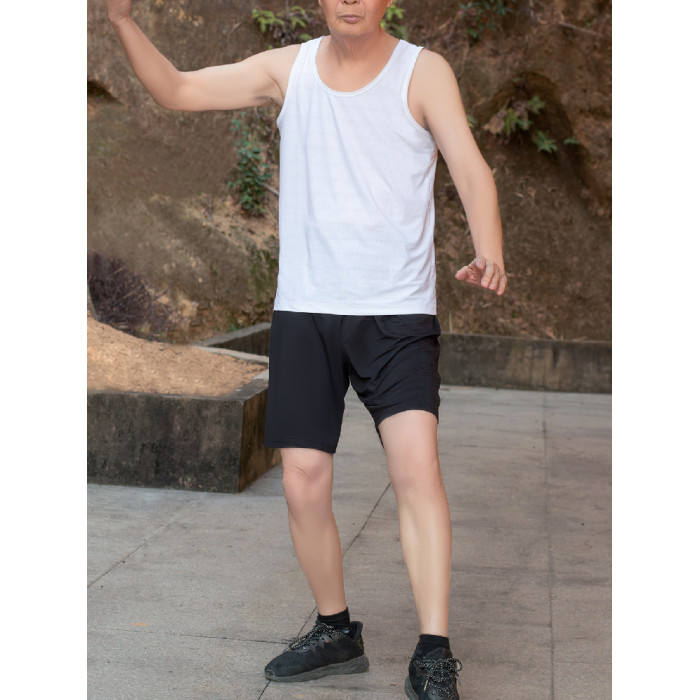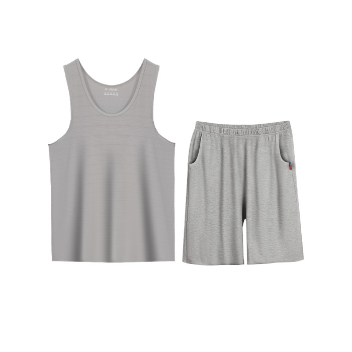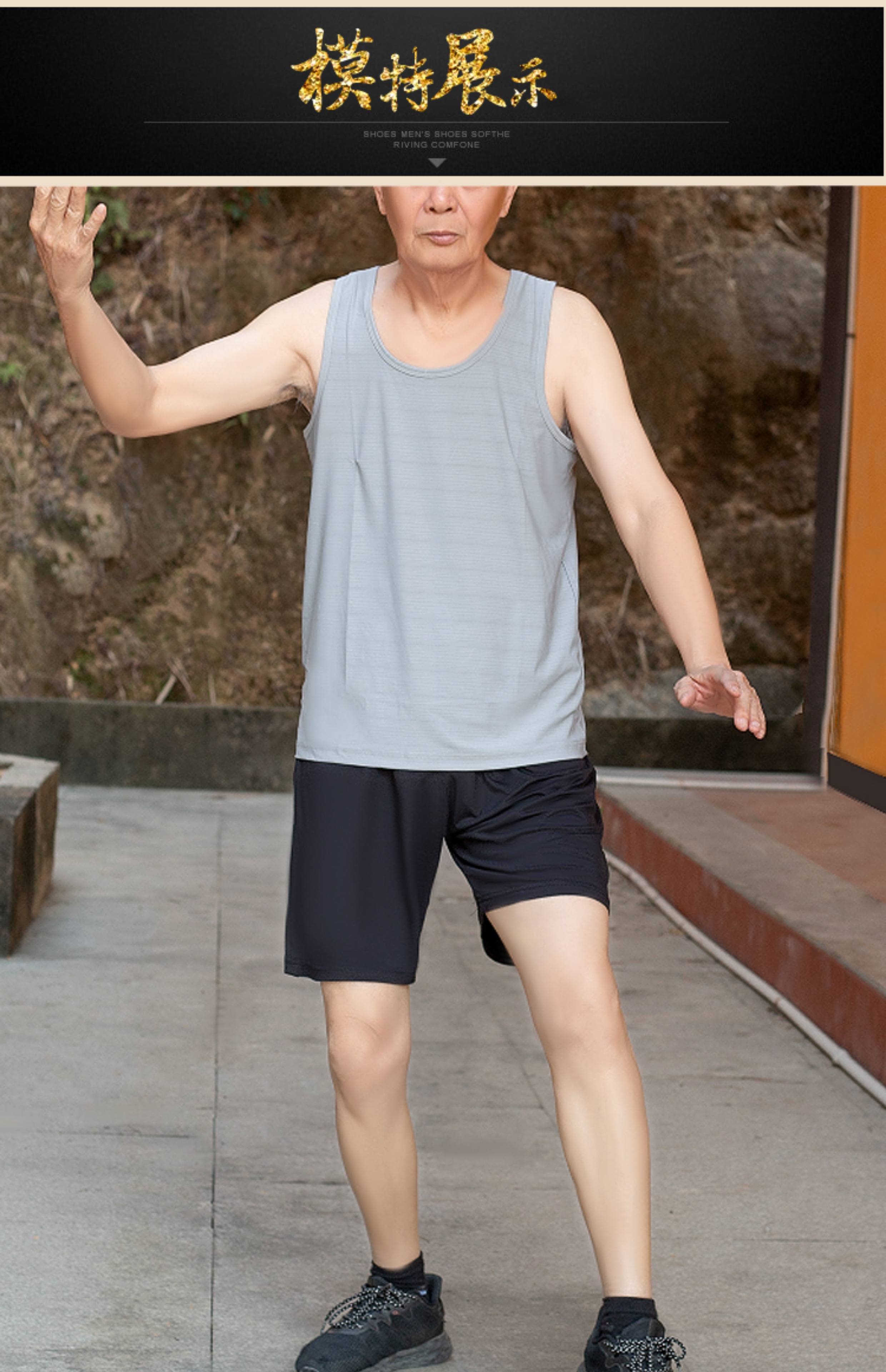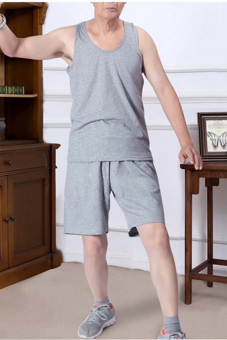 夏季冰絲爸爸背心短褲套裝男寬松中老年人爺爺睡衣老人跨欄老頭衫