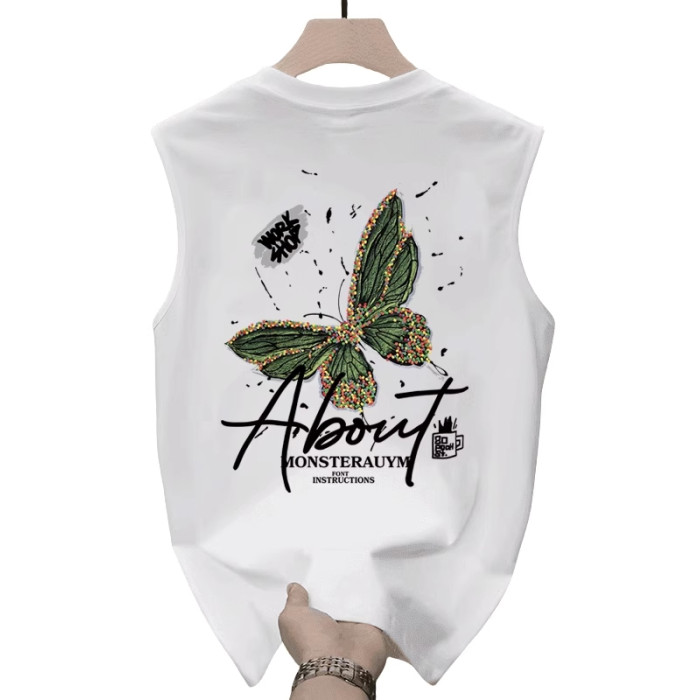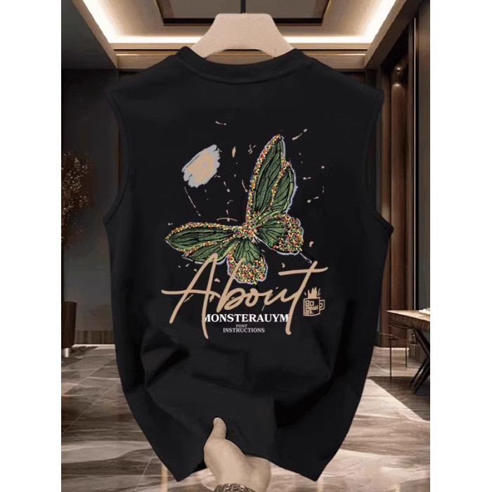 倉石一樹潮牌蝴蝶印花坎肩背心男士夏季新款寬松休閒無袖T恤上衣
