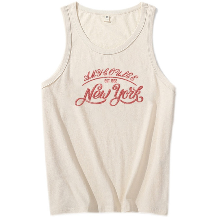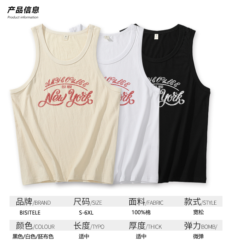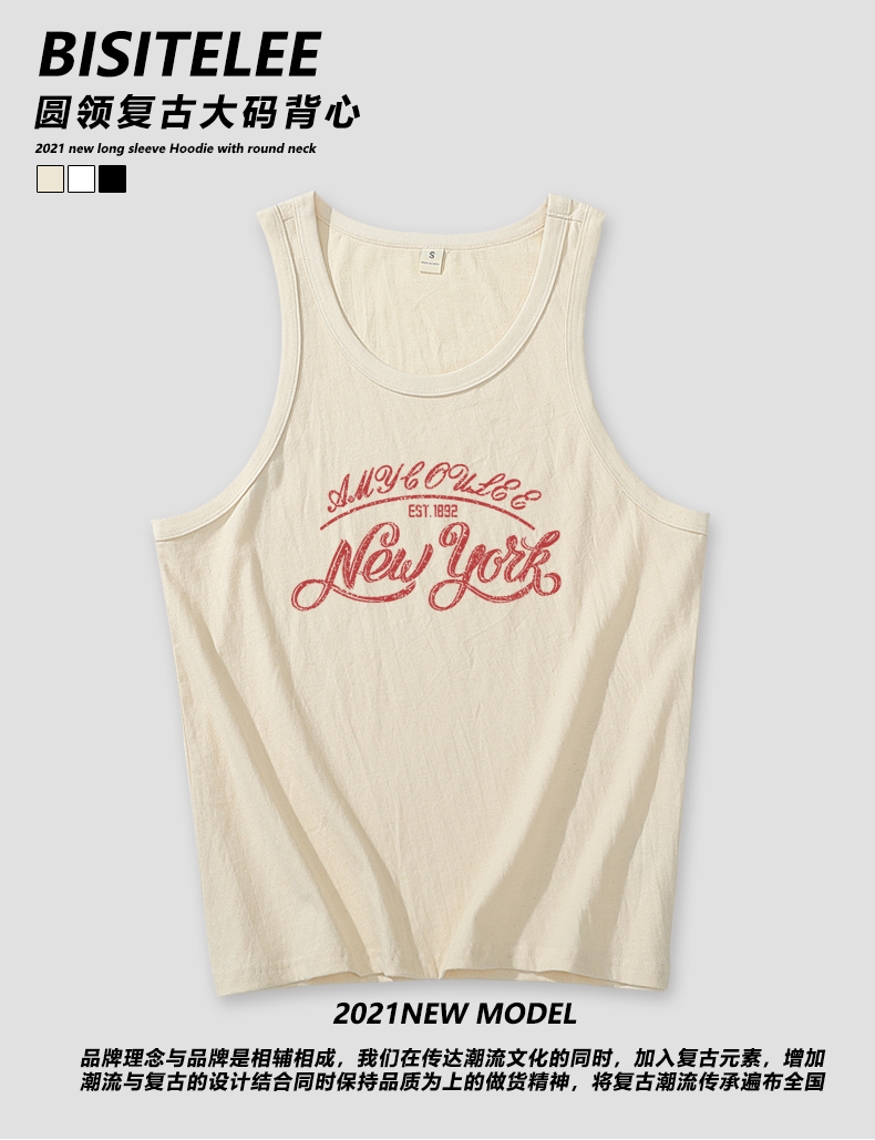 歐美復古背心運動肥佬跨欄大碼寬松夏季汗衫青年全棉打底健身男女