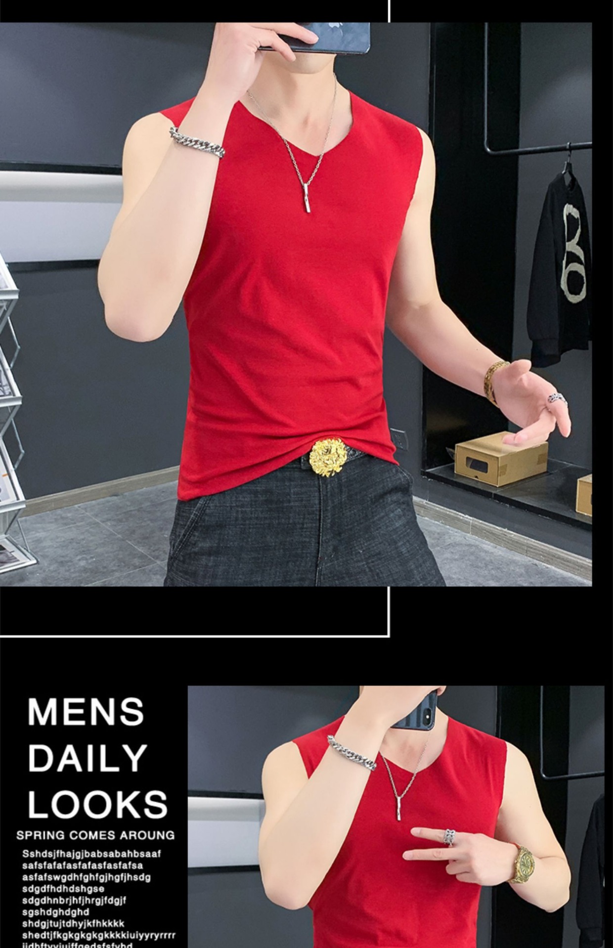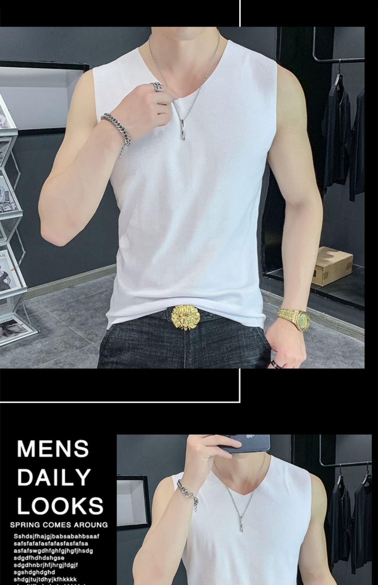 無痕薄款背心男士白襯衫內搭打底衣純棉坎肩貼身彈力修身無袖T恤