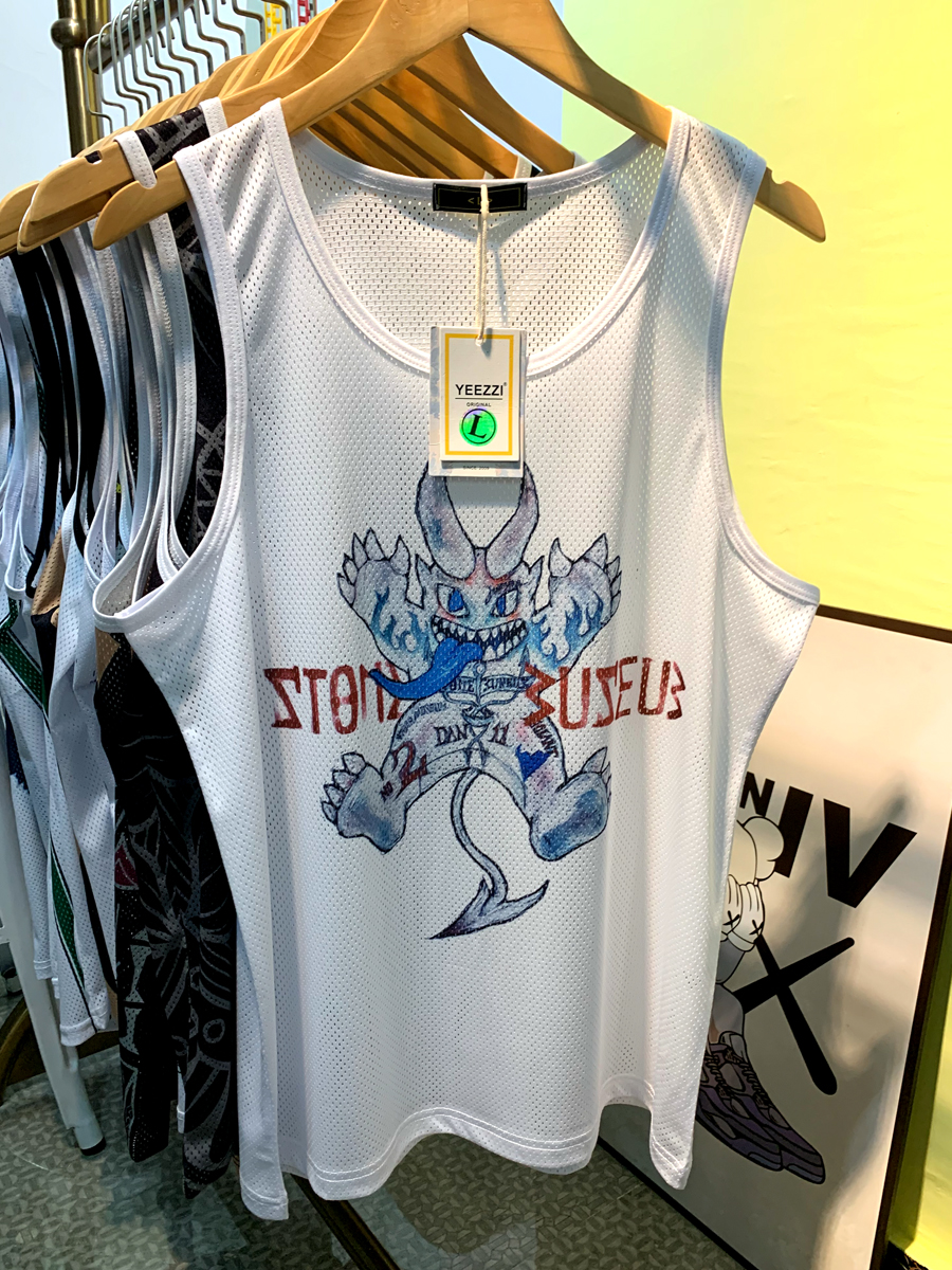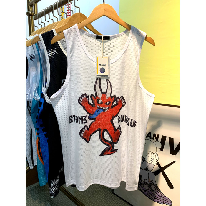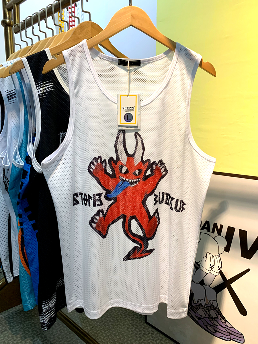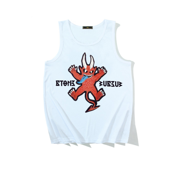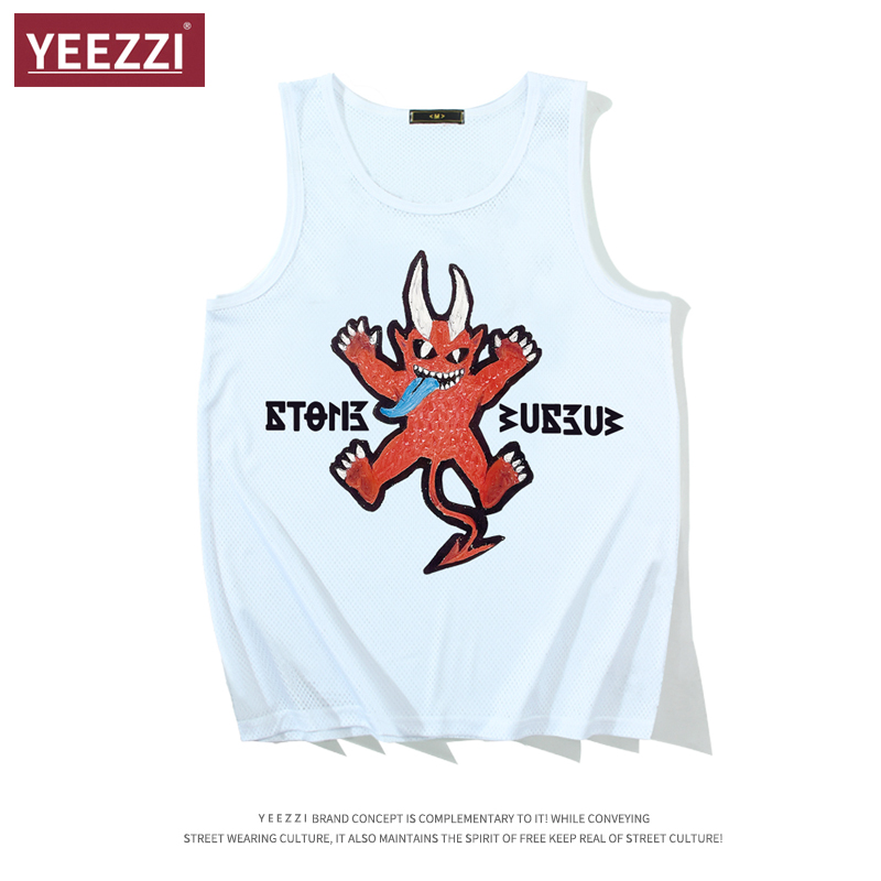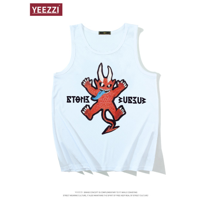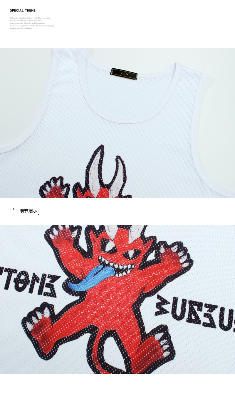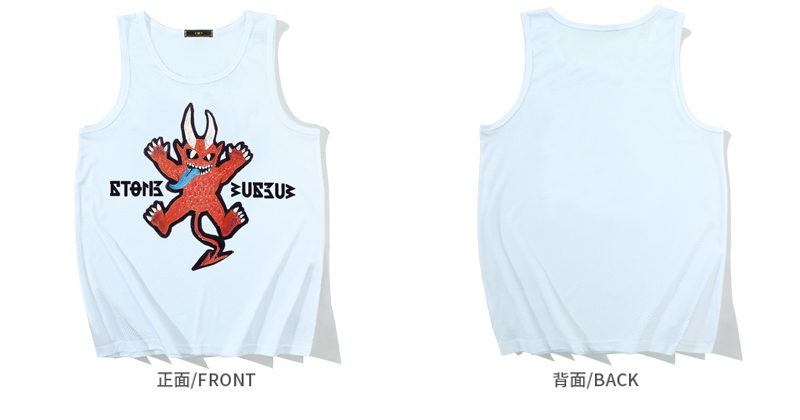 美式速乾背心網眼球衣DEMON CANDY魔鬼糖白色背心跑步健身坎肩潮