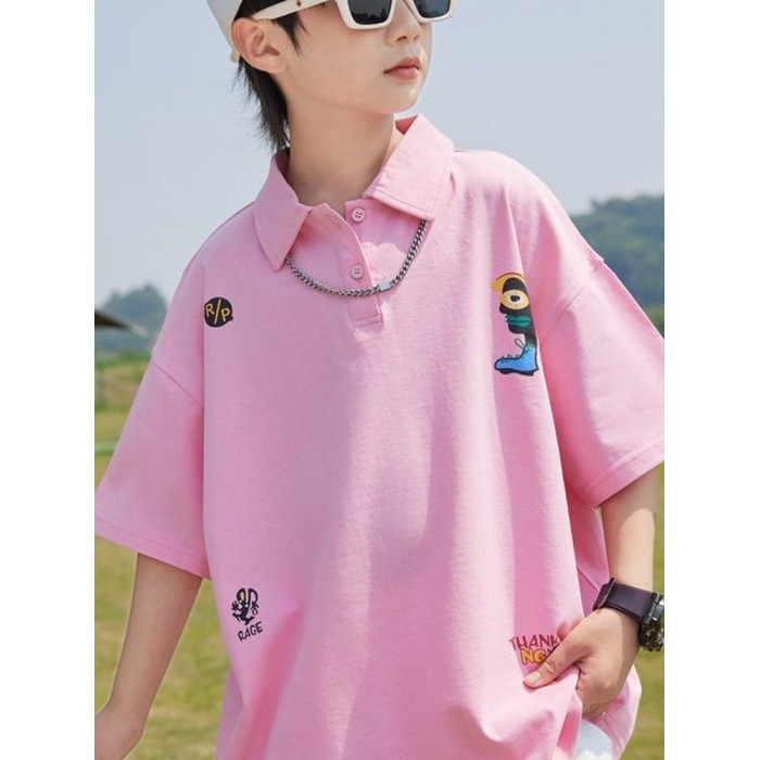 安哼安哼兒童裝男童短袖T恤POLO衫2025新款夏裝中大童夏季男孩休