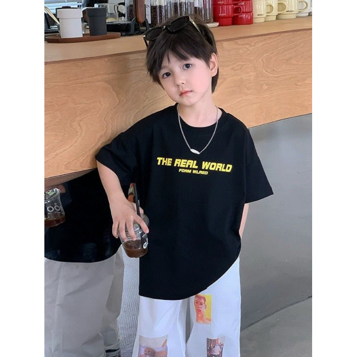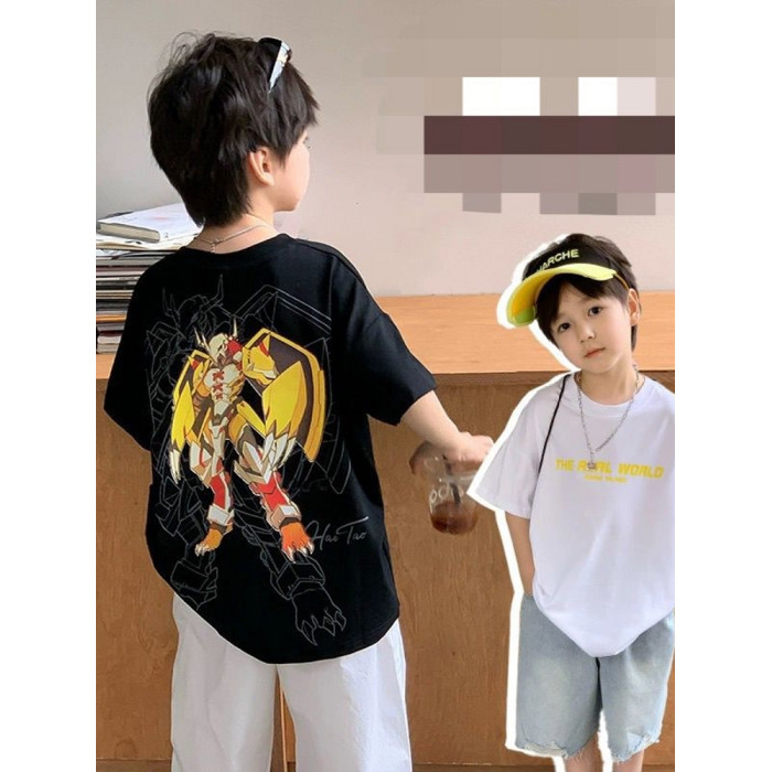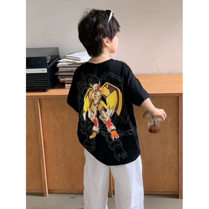 安哼安哼夏日潮酷男童T恤純棉短袖卡通印花2025新款兒童小孩夏天