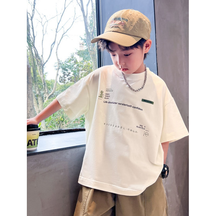 男童白色短袖T恤夏裝2025新款薄兒童夏季半袖體恤男孩棉t夏款上衣