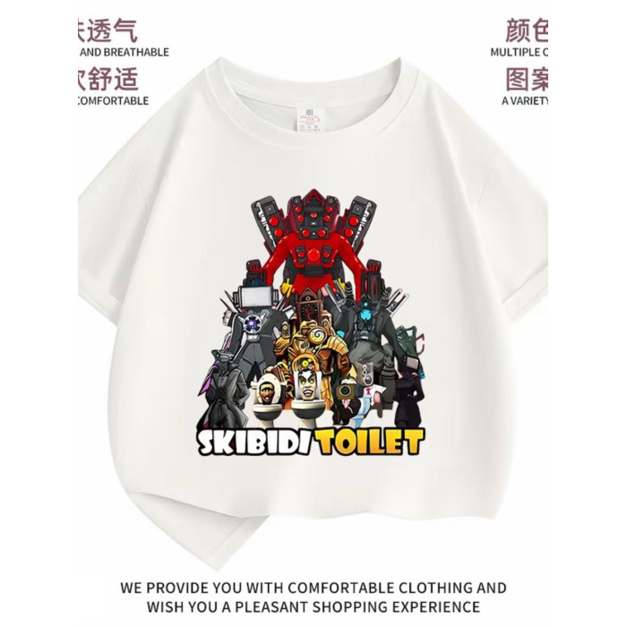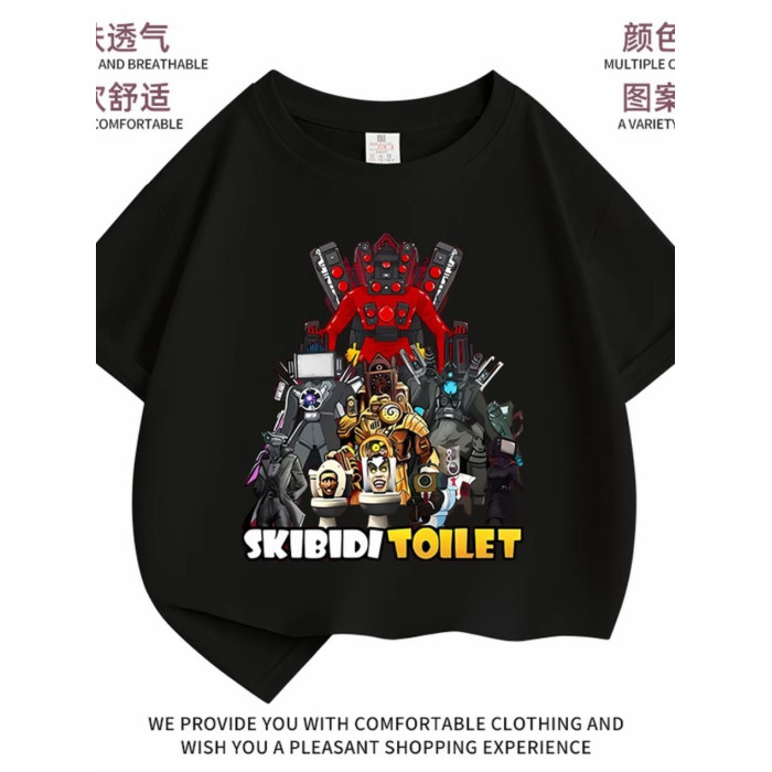 安哼安哼夏季男童泰坦馬桶音響監控新款純棉男女T恤中小短袖兒童